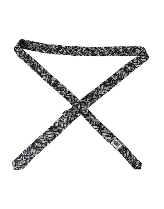 Dolce & Gabbana Black Trumpet Print Silk Adjustable Tie