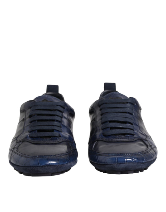 Dolce & Gabbana Dark Blue Leather Low Top Men Sneakers Shoes