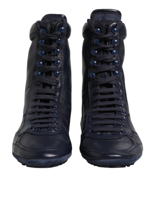 Dolce & Gabbana Dark Blue Leather KING High Top Sneakers Shoes