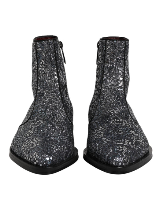 Dolce & Gabbana Dark Gray Cotton Sequined Chelsea Boots Shoes