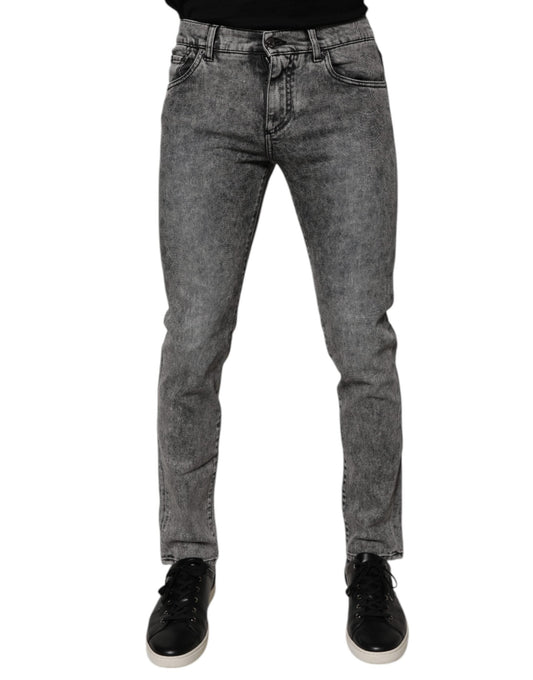 Dolce & Gabbana Dark Gray Washed Cotton Skinny Men Denim Jeans