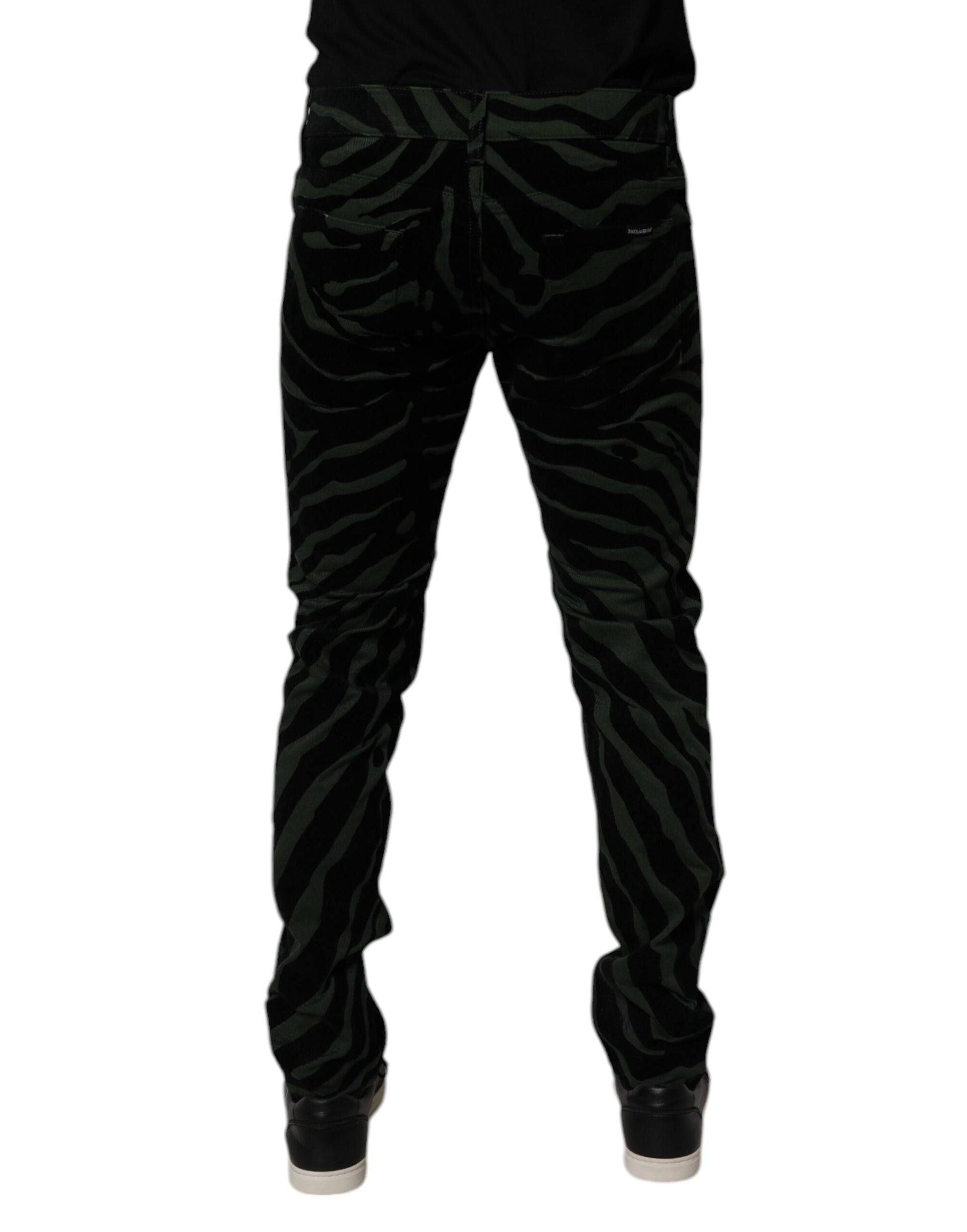 Dolce & Gabbana Black Green Stripes Cotton Skinny Denim Jeans