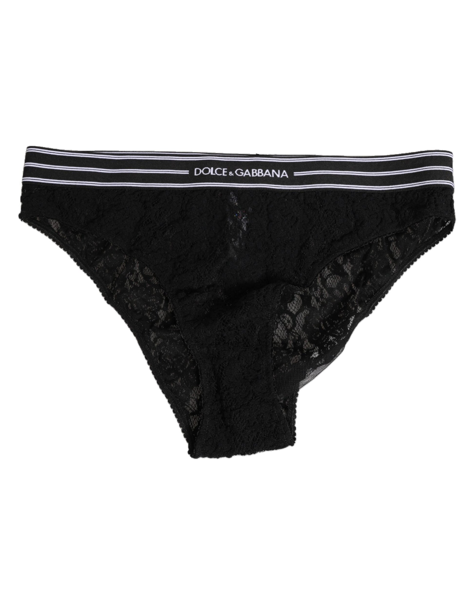 Dolce & Gabbana Black Lace Nylon High Waist Panty Underwear