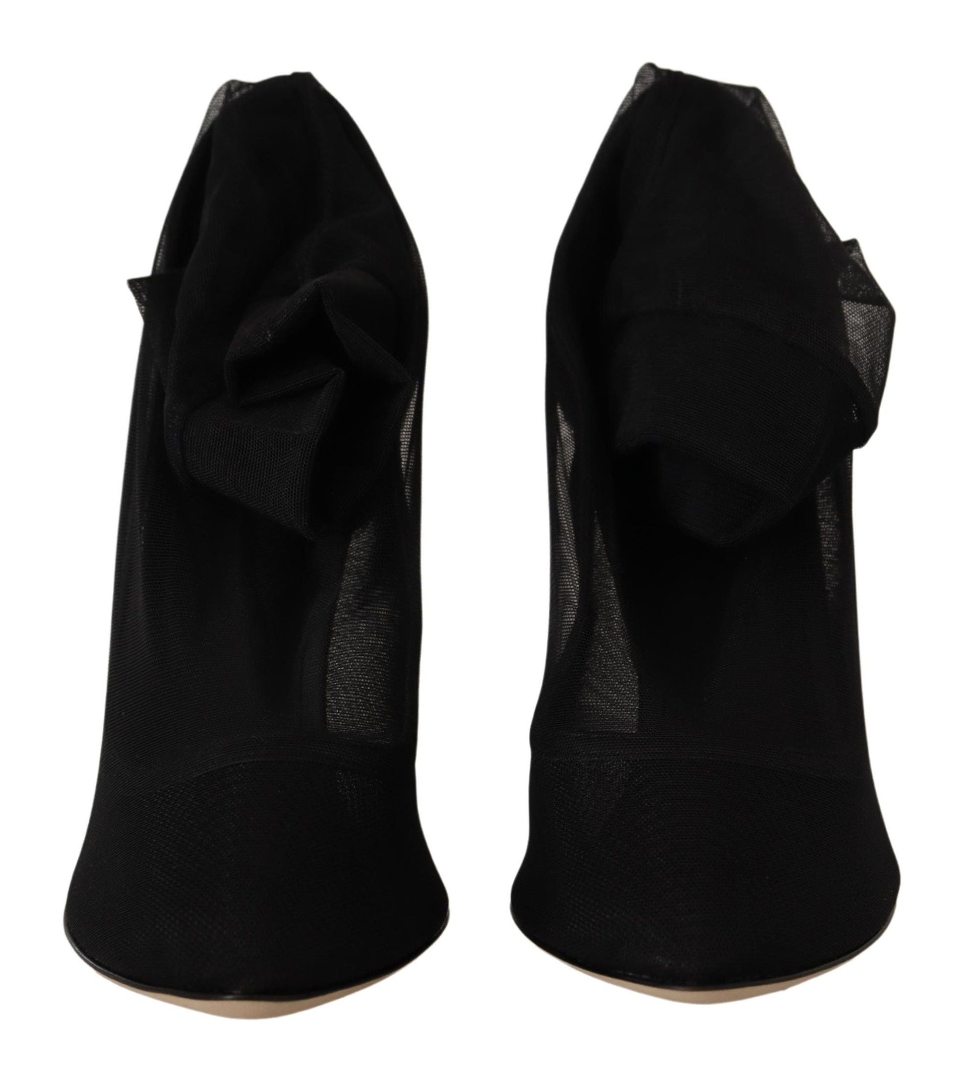 Dolce & Gabbana Black Stretch Tulle Stretch Boots Shoes