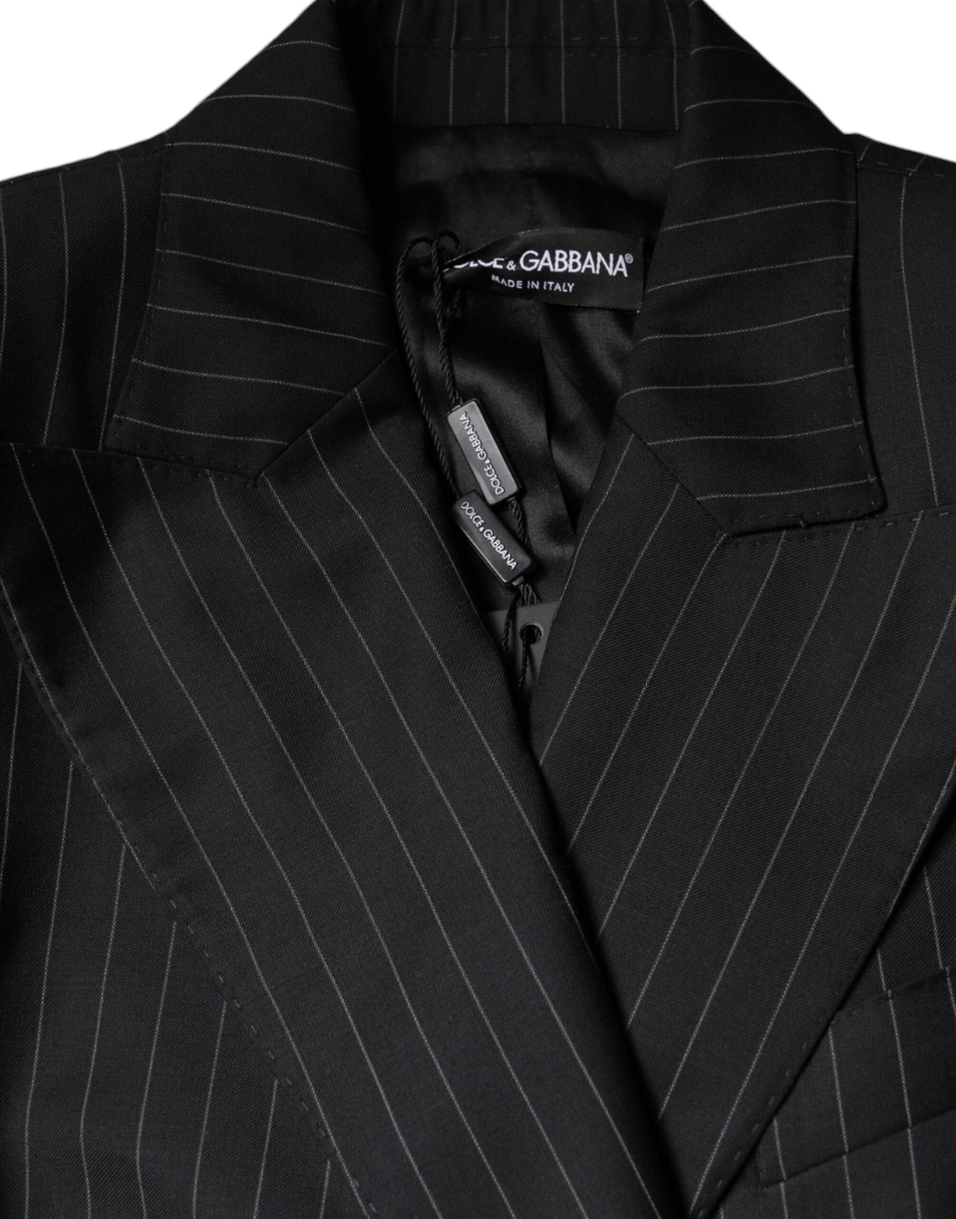 Dolce & Gabbana Black Striped Double Breasted Coat Jacket