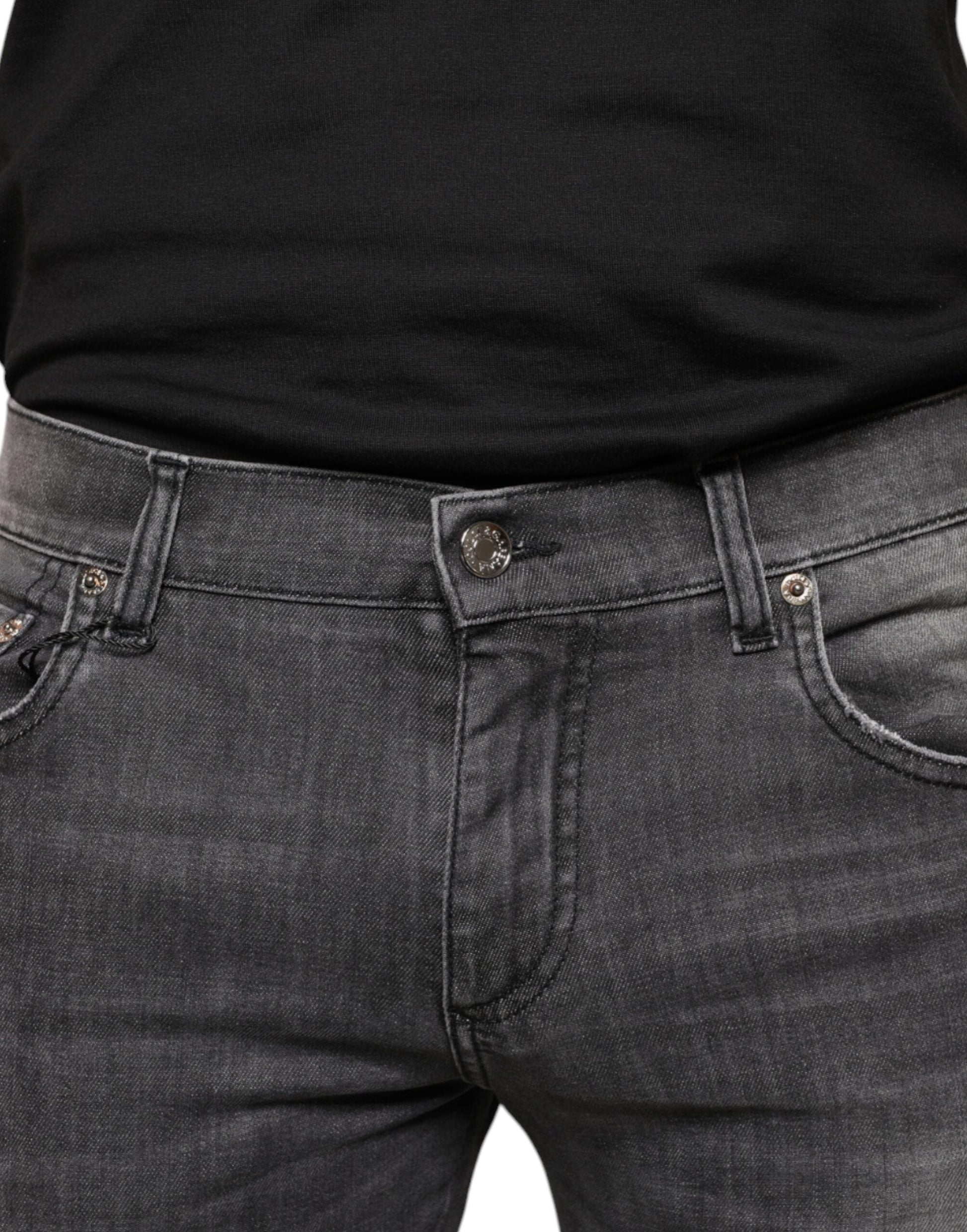 Dolce & Gabbana Black Tattered Cotton Skinny Men Denim Jeans