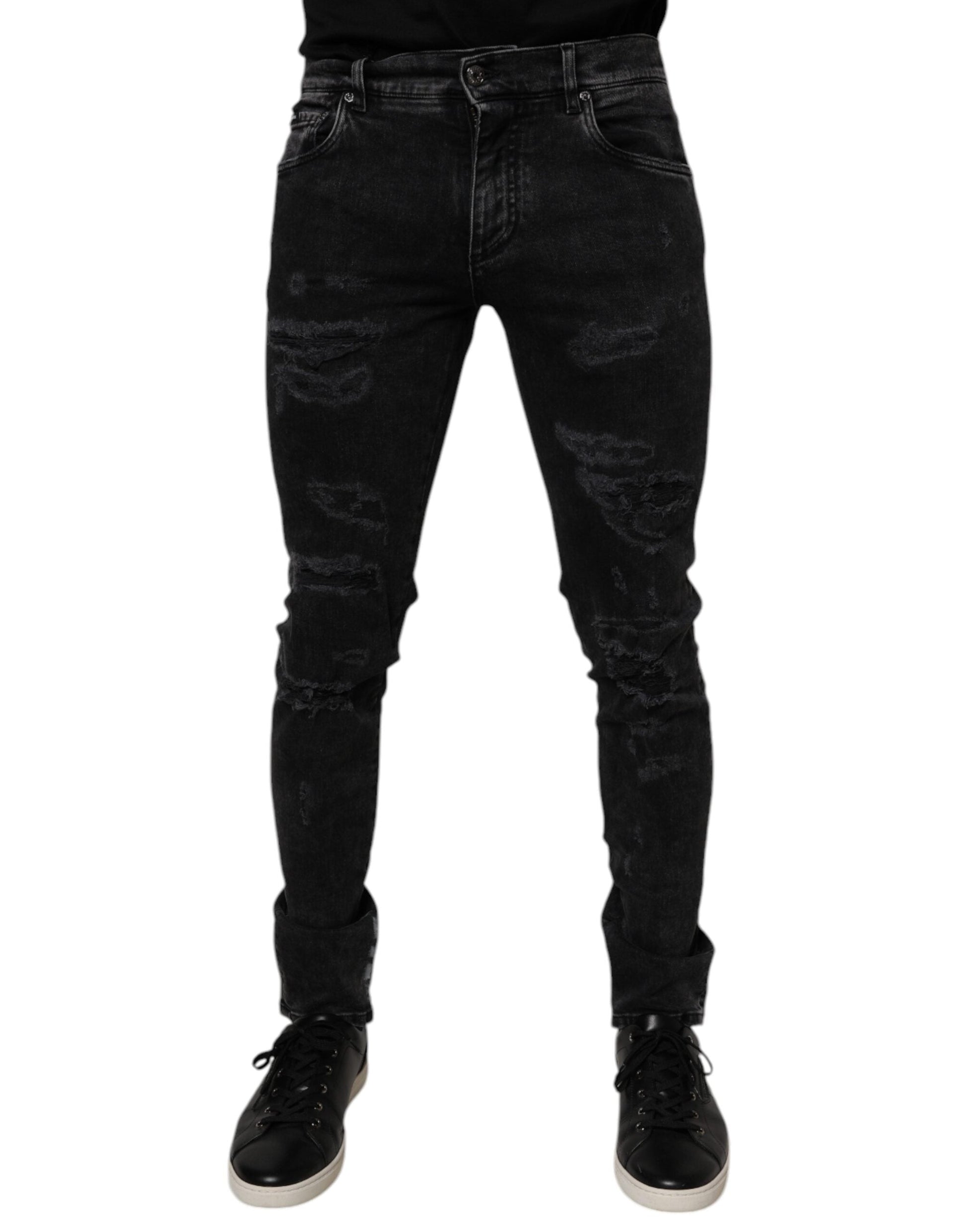 Dolce & Gabbana Black Tattered Cotton Skinny Men Denim Jeans