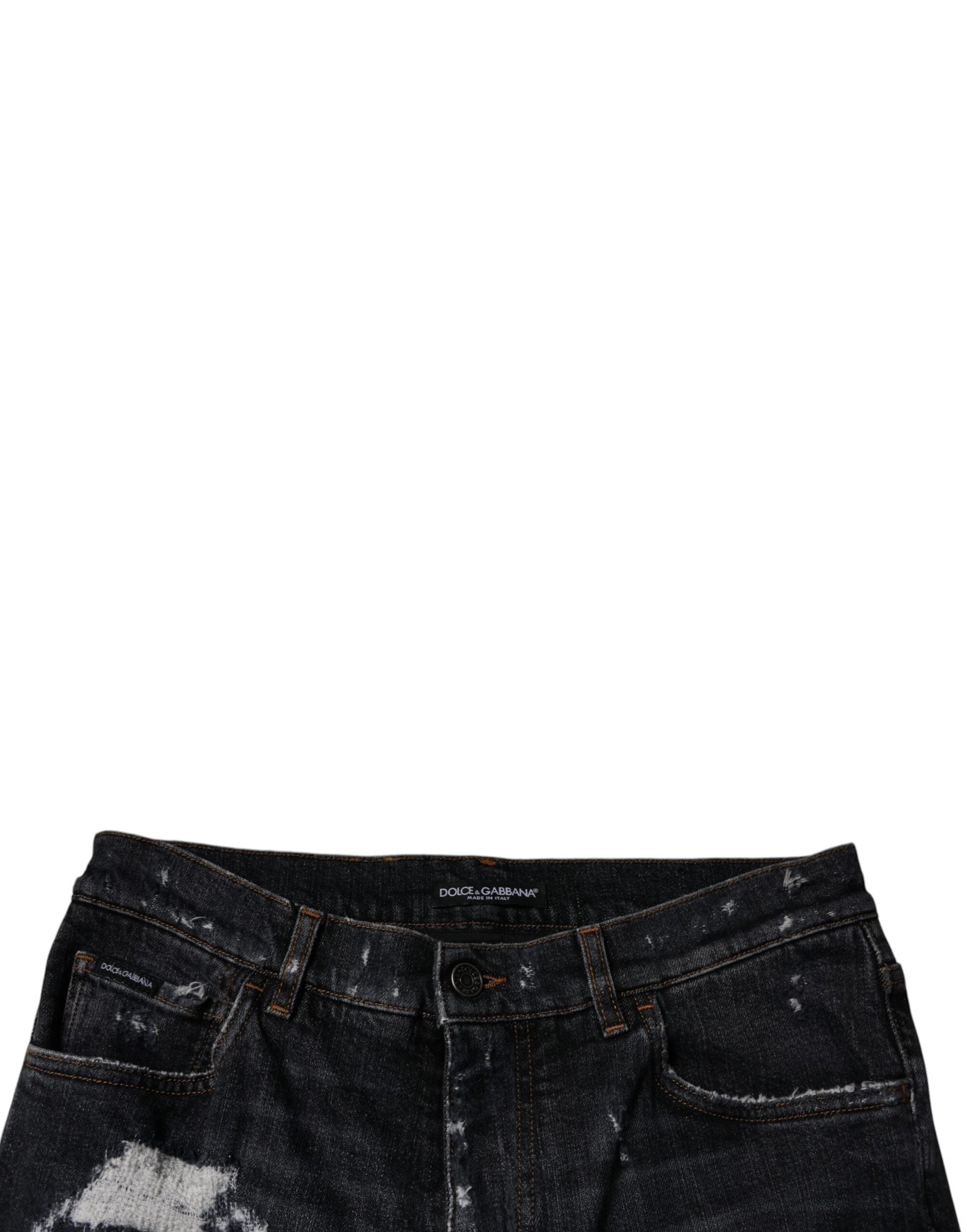 Dolce & Gabbana Black Tattered Cotton Skinny Men Denim Jeans