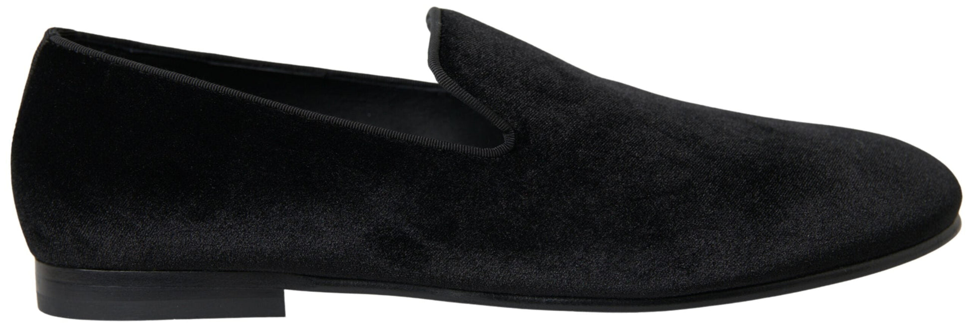 Dolce & Gabbana Black Velvet Loafers Formal Shoes