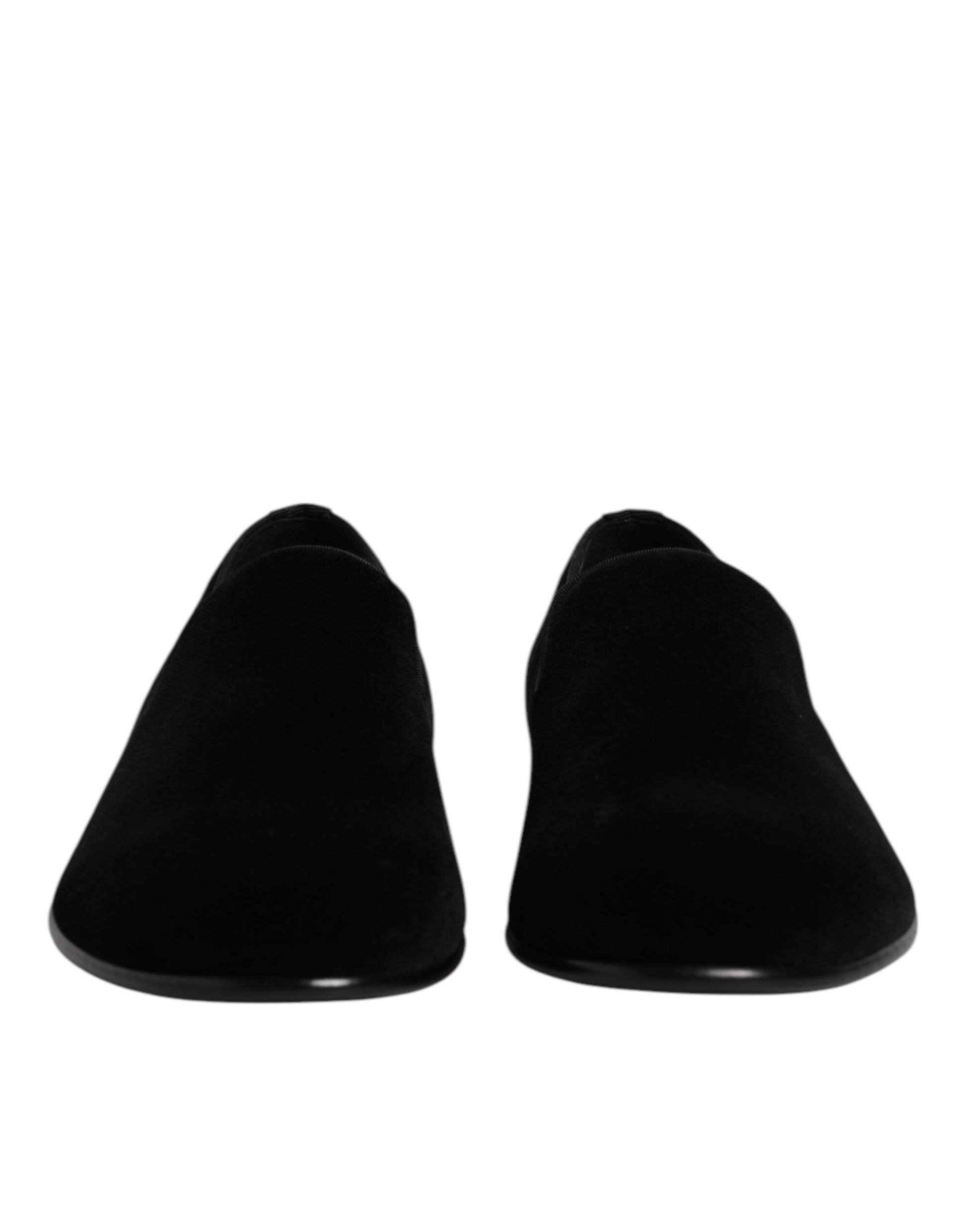 Dolce & Gabbana Black Velvet Slip On Loafers Formal Shoes