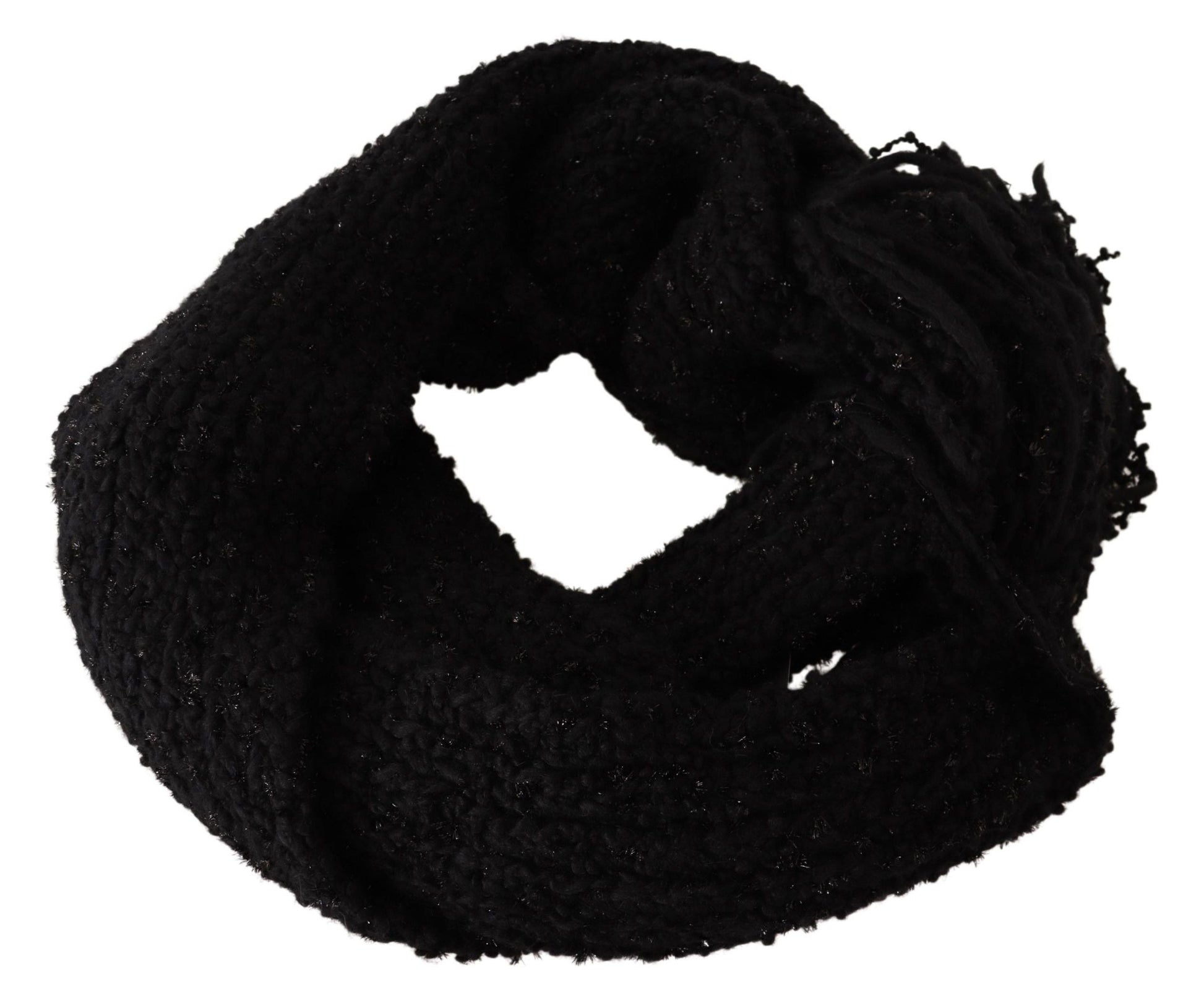 Dolce & Gabbana Black Virgin Wool Knitted Wrap Shawl Scarf