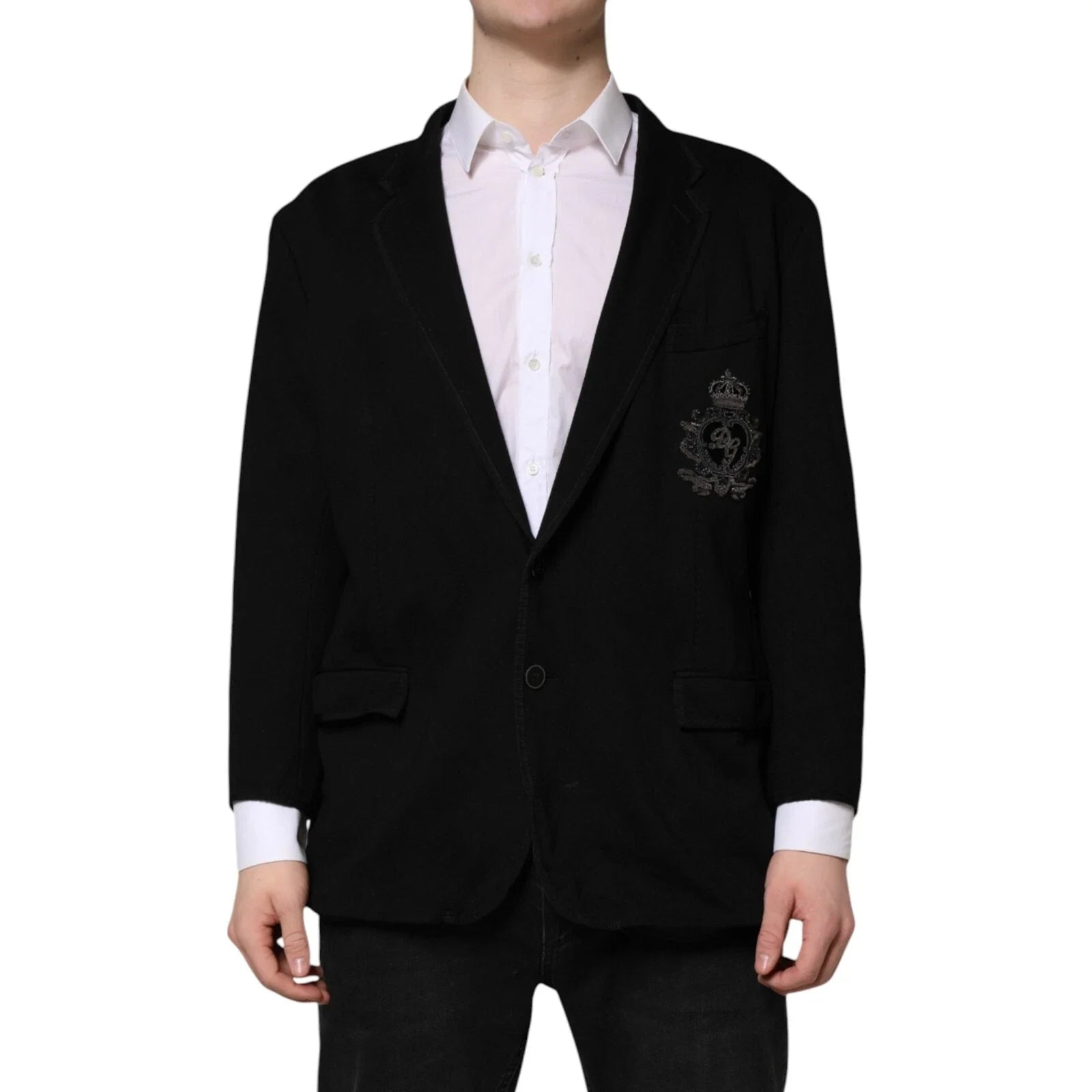 Dolce & Gabbana Black Viscose DG Crown Blazer Coat Jacket