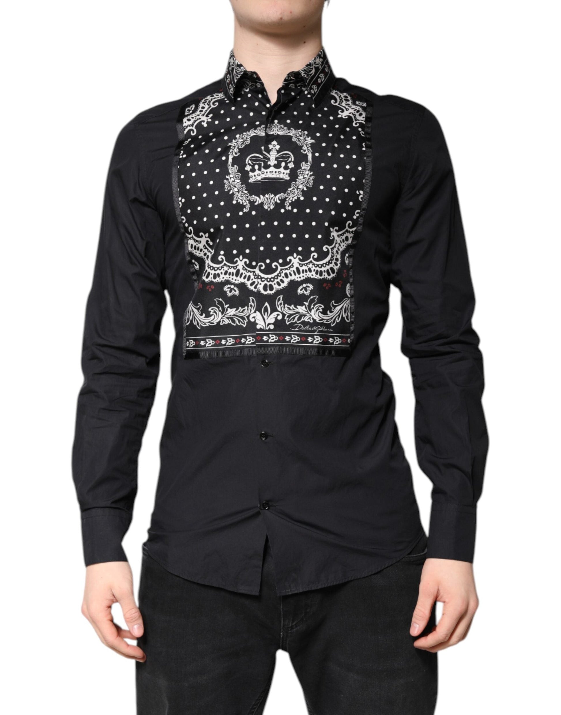 Dolce & Gabbana Black White Bandana GOLD Formal Dress Shirt