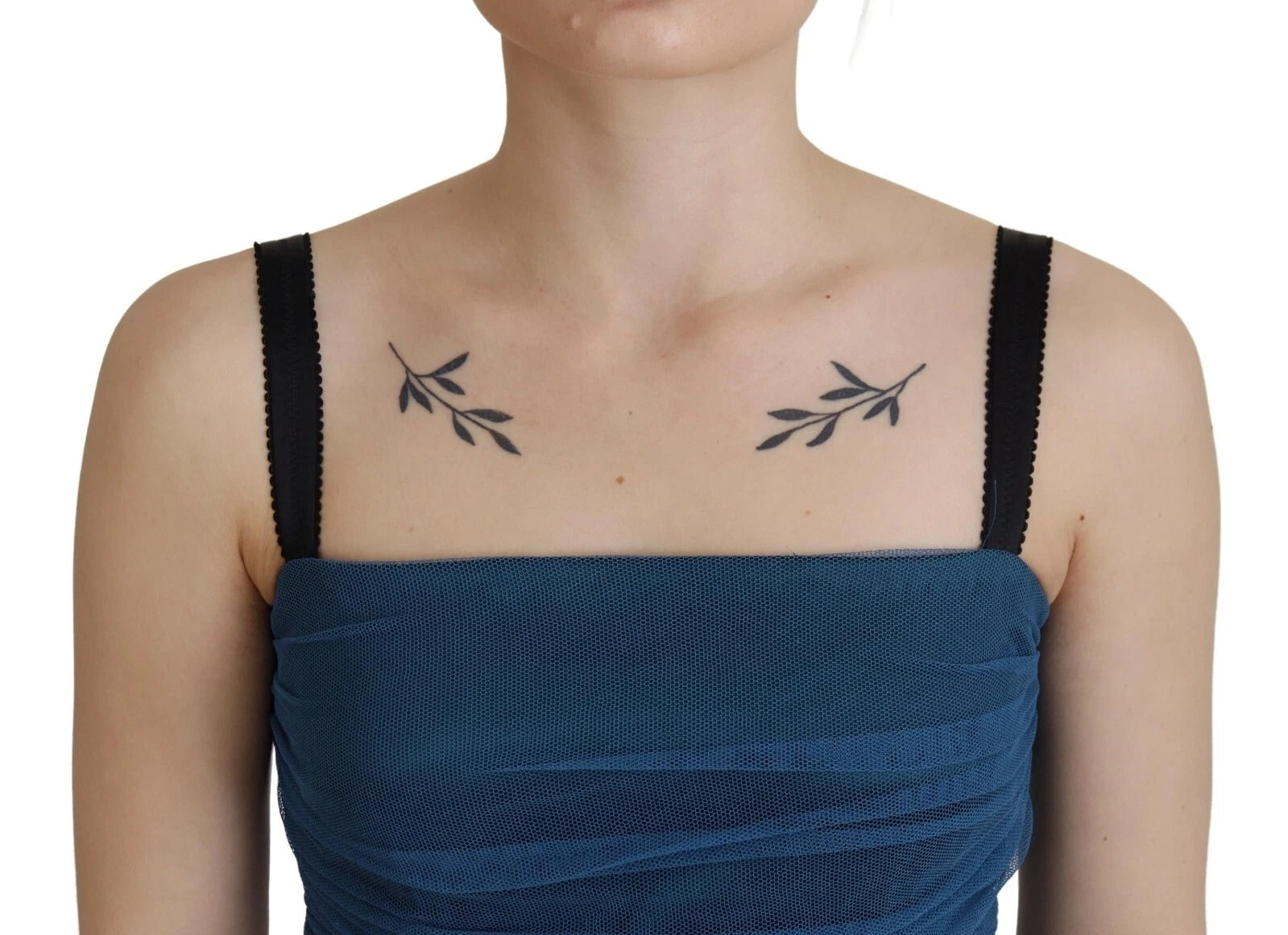 Dolce & Gabbana Blue Mesh Trim Ruched Tulle Sheath Dress