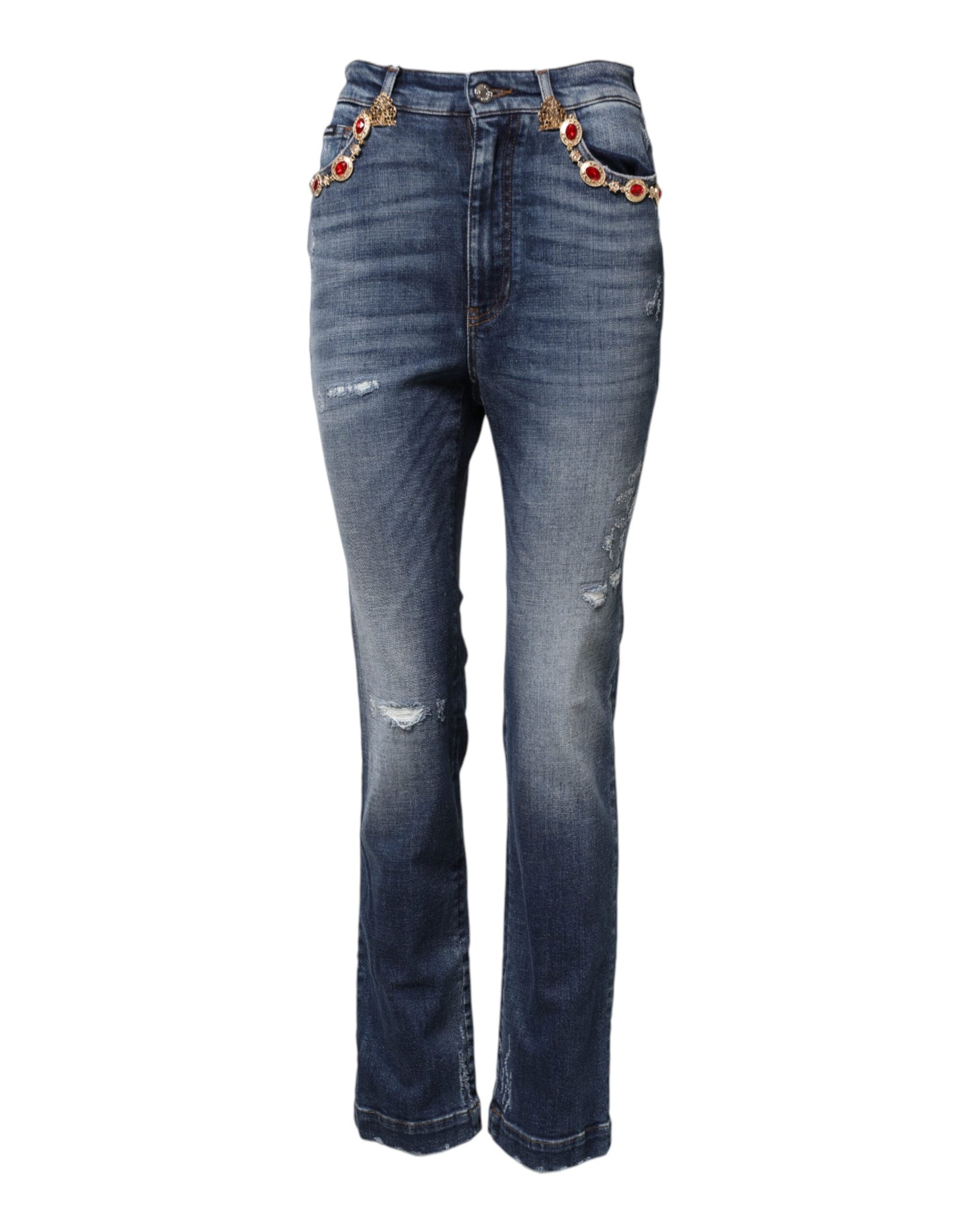 Dolce & Gabbana Blue Rhinestone Embellished Denim Jeans