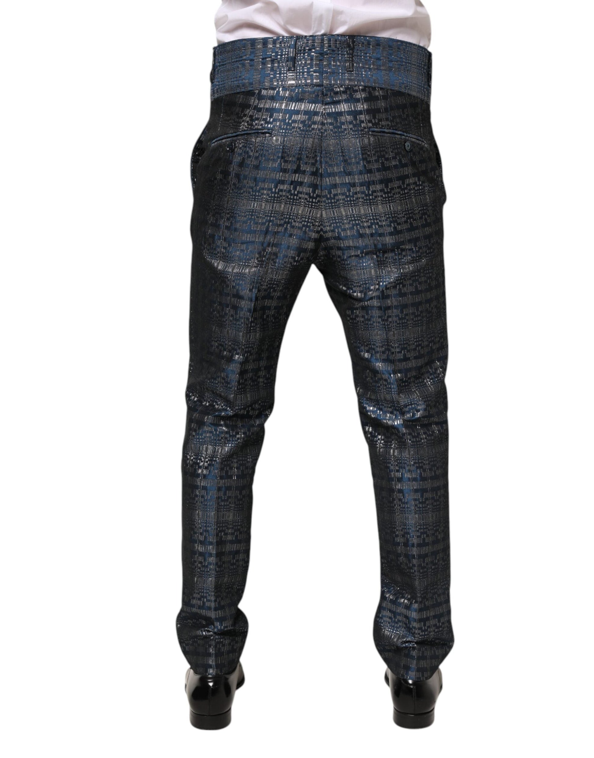 Dolce & Gabbana Blue Silver Shiny Silk Skinny Men Trouser Pants