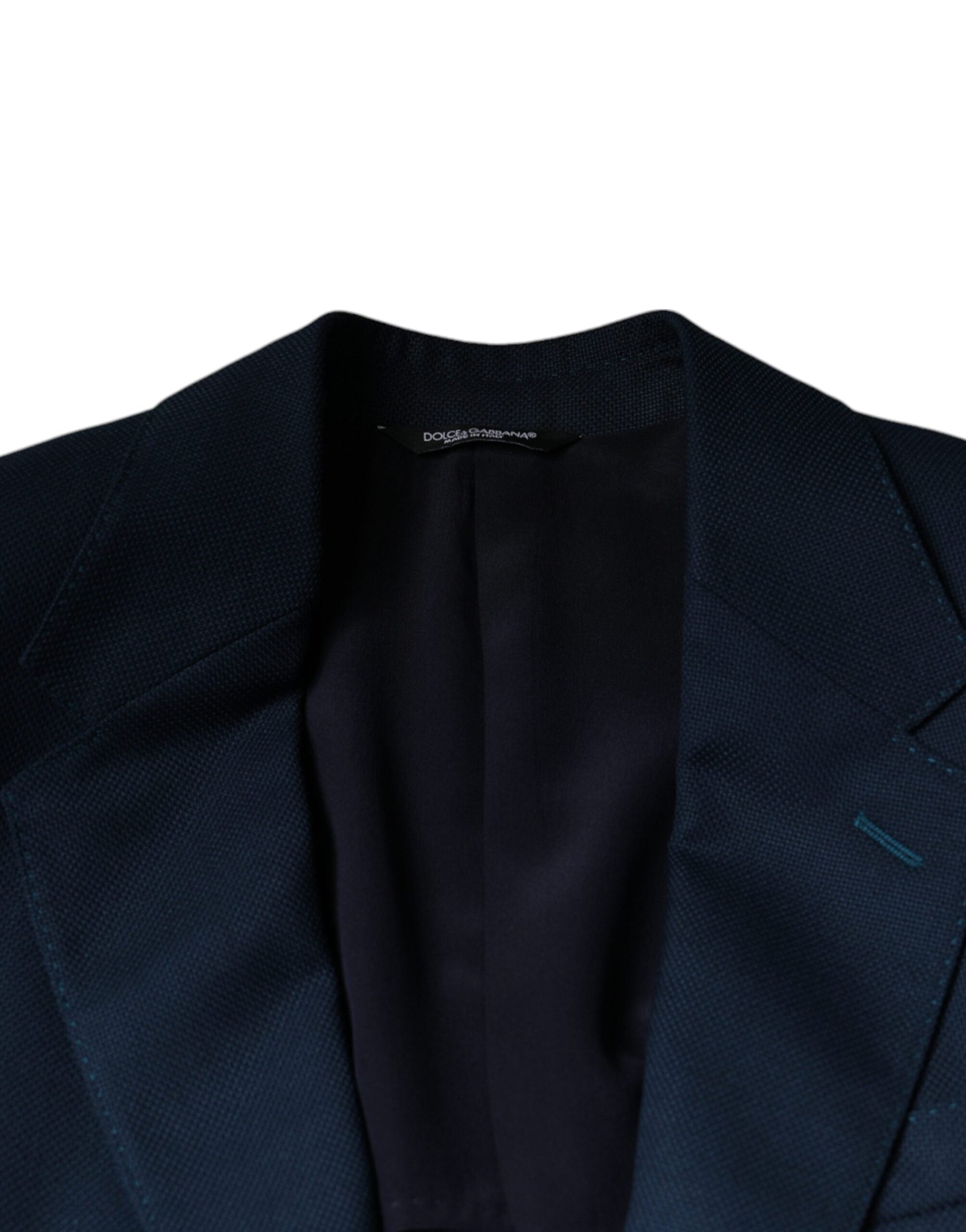 Dolce & Gabbana Blue Wool Logo Single Breasted Coat Blazer