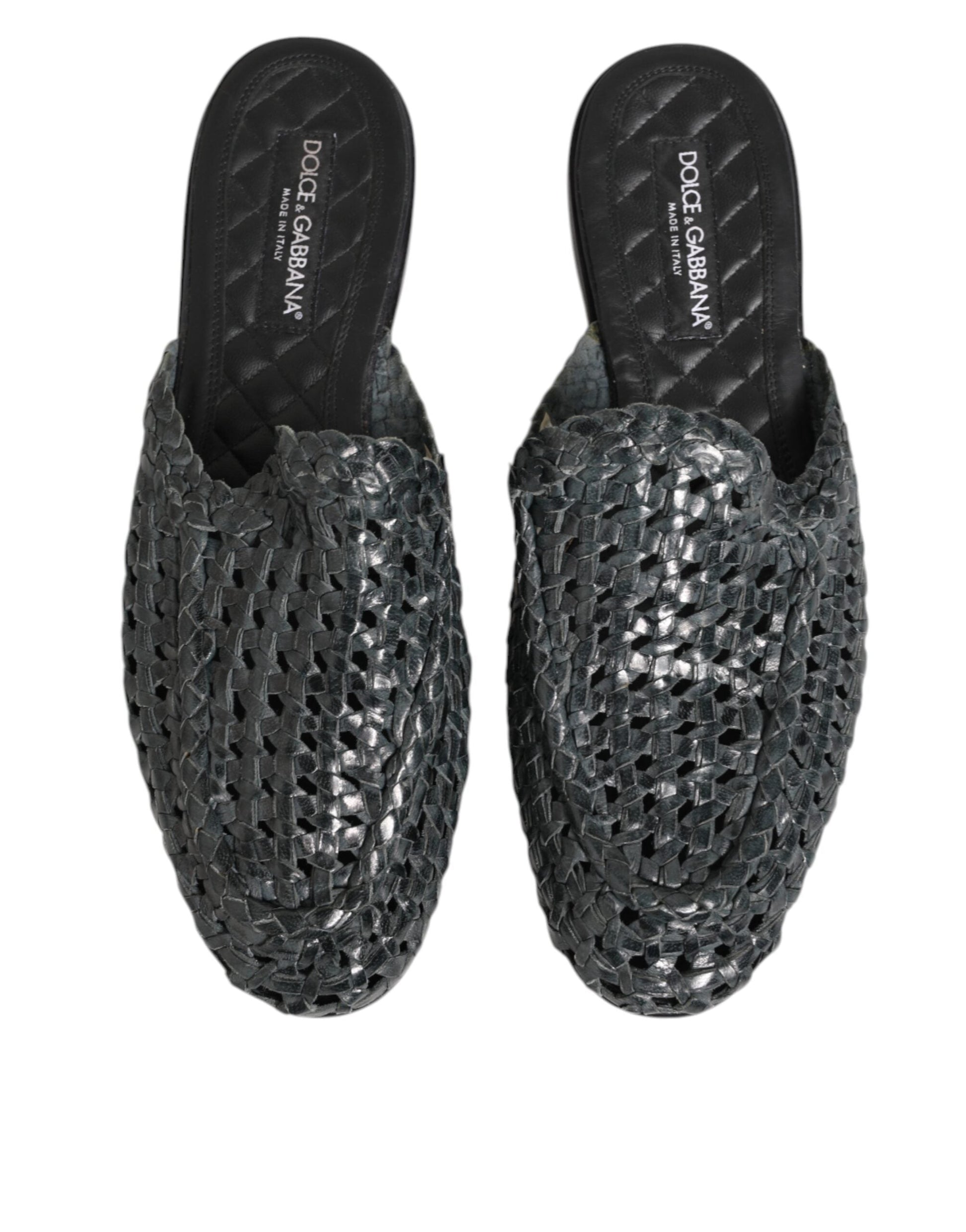 Dolce & Gabbana Blue Woven Slides MULES Men Sandals Shoes