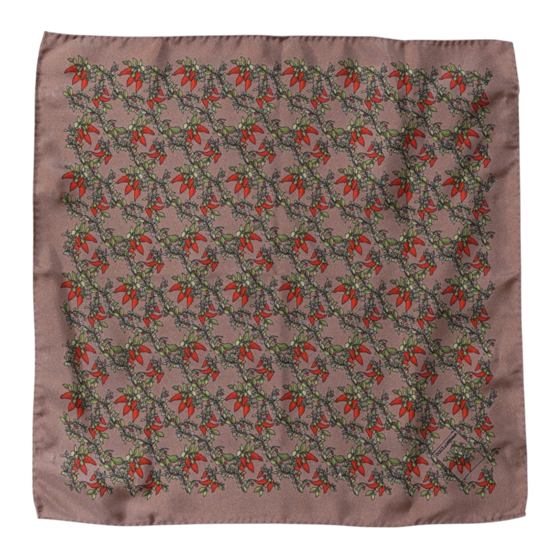 Dolce & Gabbana Brown Chilis Silk Square Men Foulard Scarf