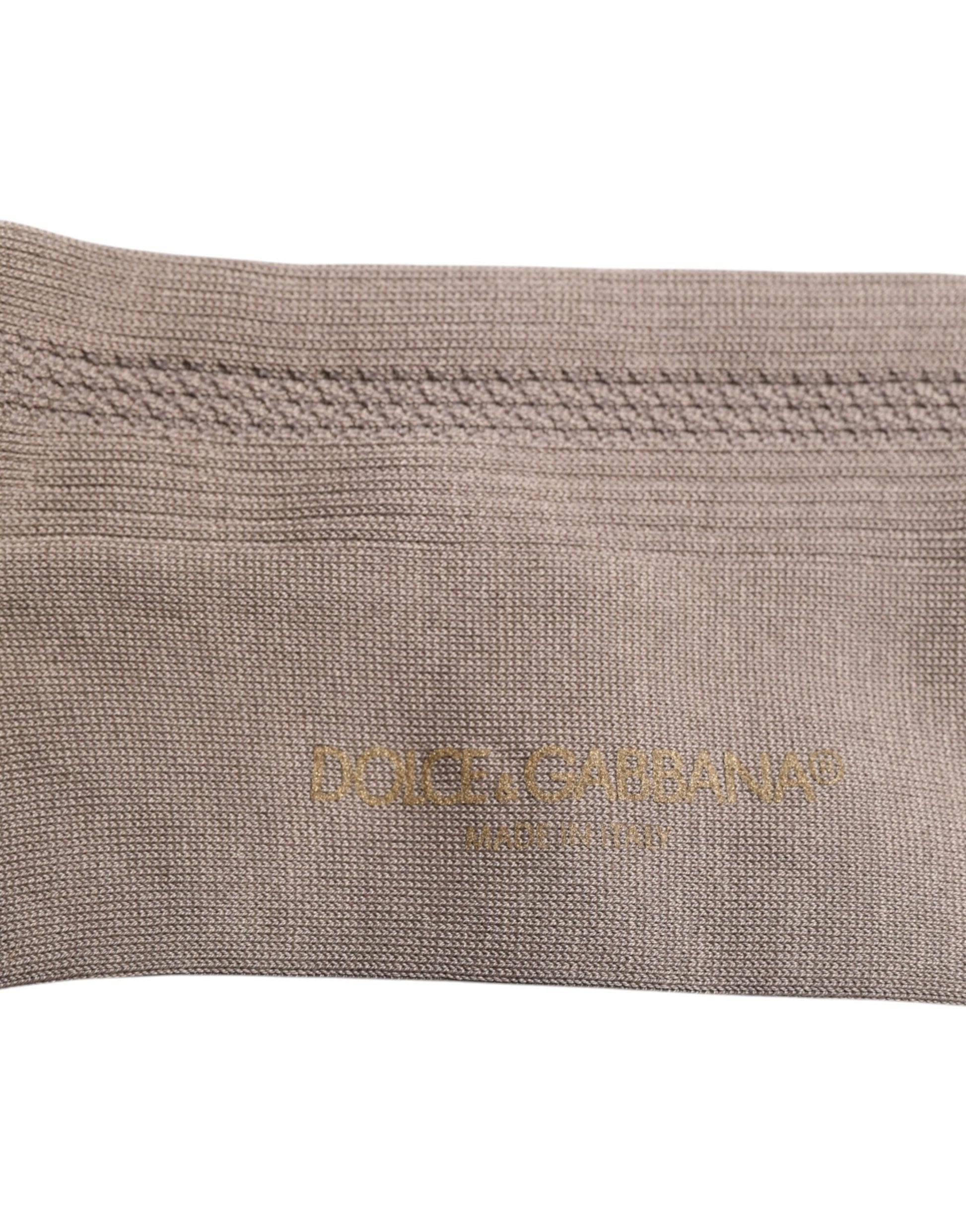 Dolce & Gabbana Brown Cotton Stretch Logo Over Calf Socks