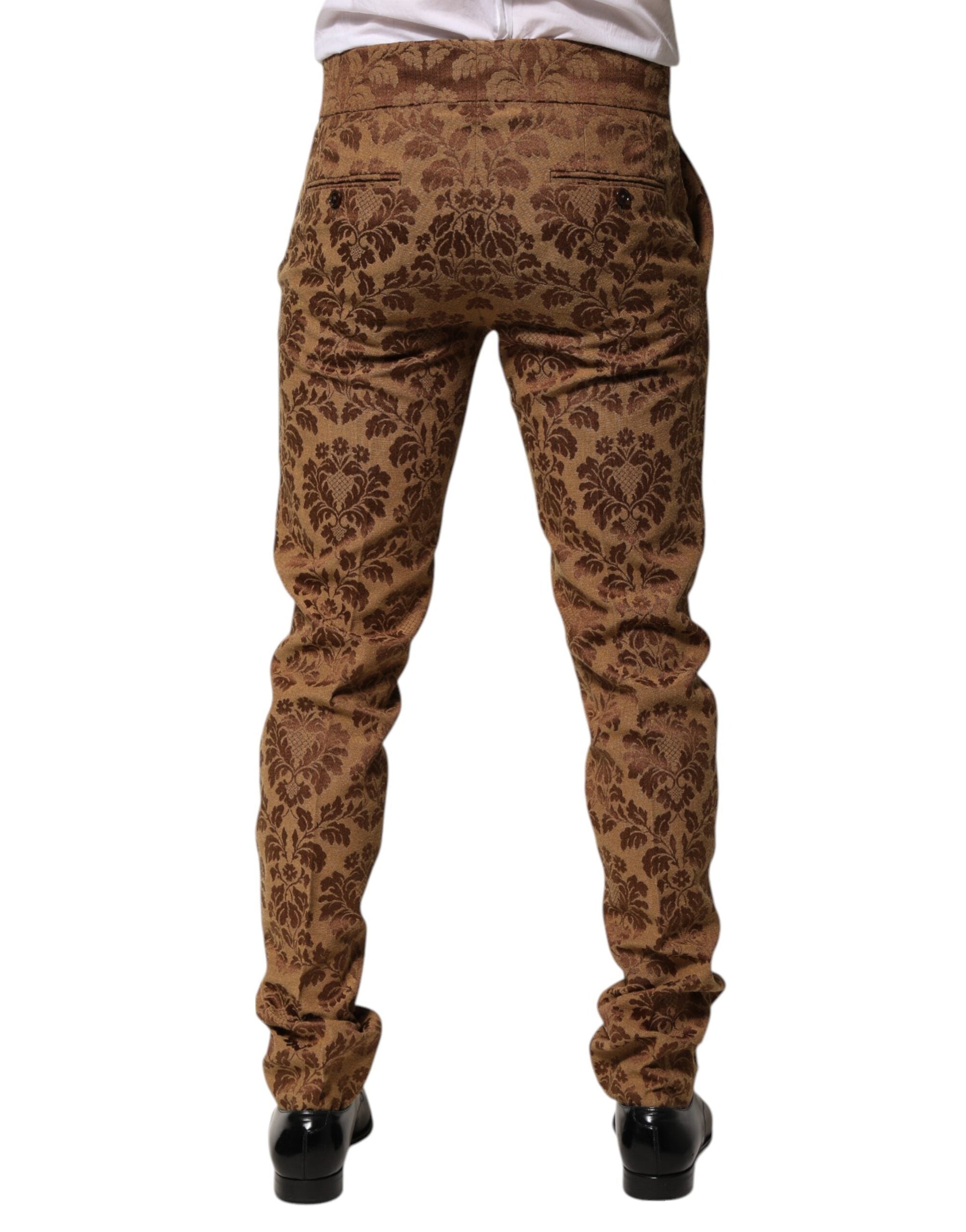 Dolce & Gabbana Brown Floral Jacquard Men Skinny Trouser Pants