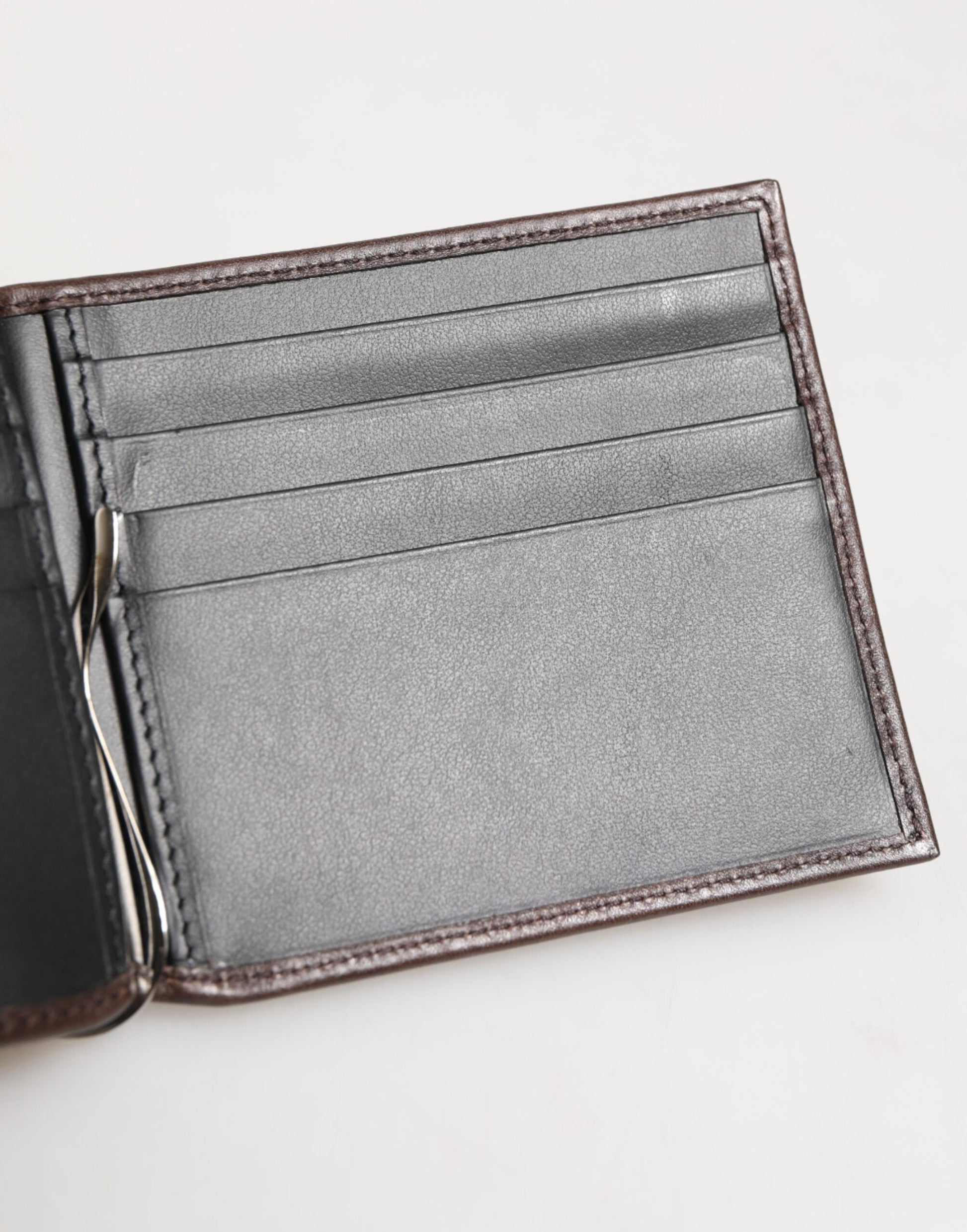 Dolce & Gabbana Brown Leather DG Logo Engrave Bifold Card Holder Wallet