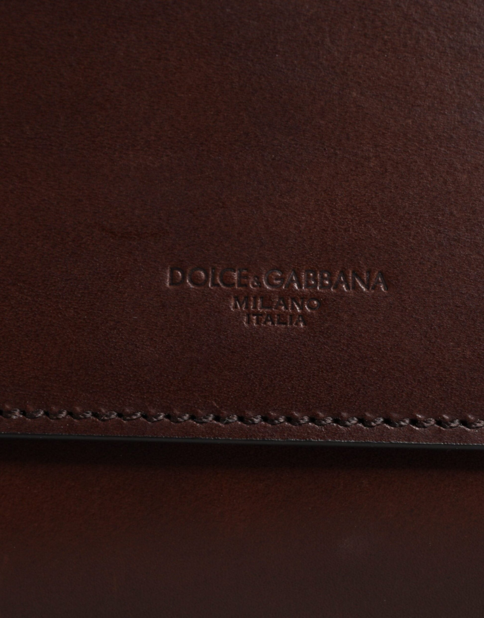 Dolce & Gabbana Brown Leather Logo Embossed Crossbody Bag