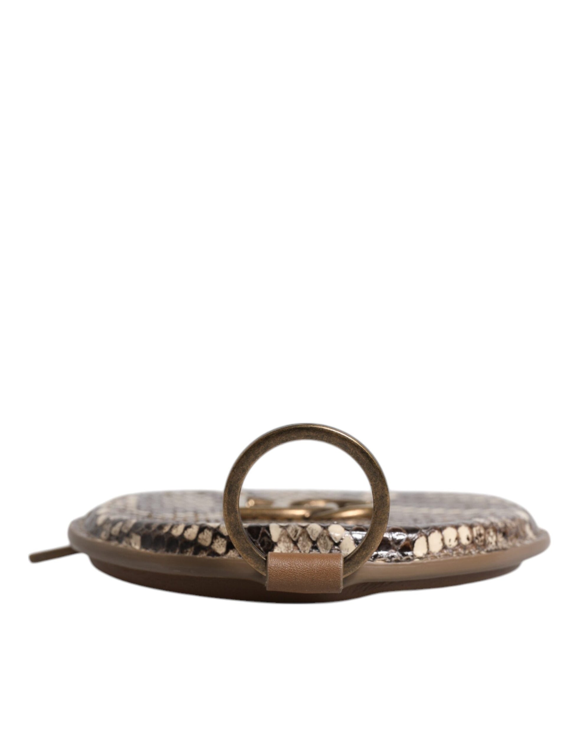 Dolce & Gabbana Brown Round Leather DG Logo Coin Purse Lanyard Wallet