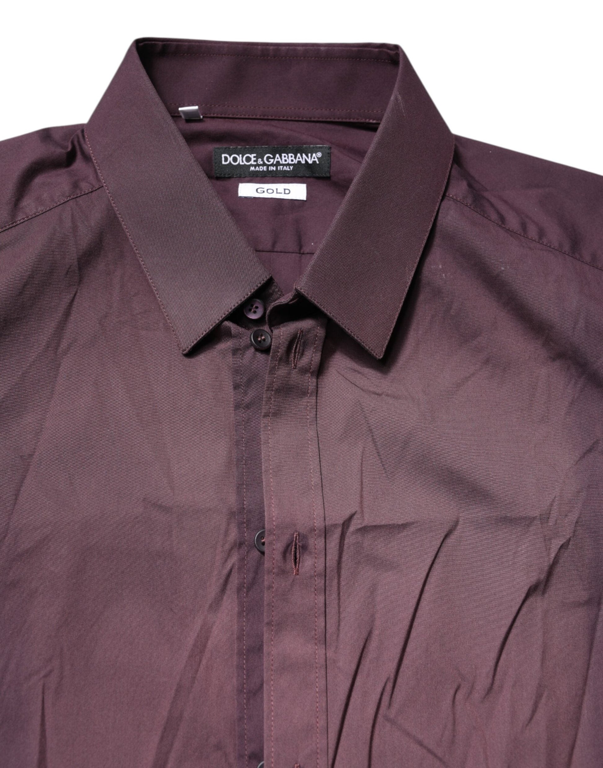 Dolce & Gabbana Burgundy Cotton GOLD Long Sleeves Shirt