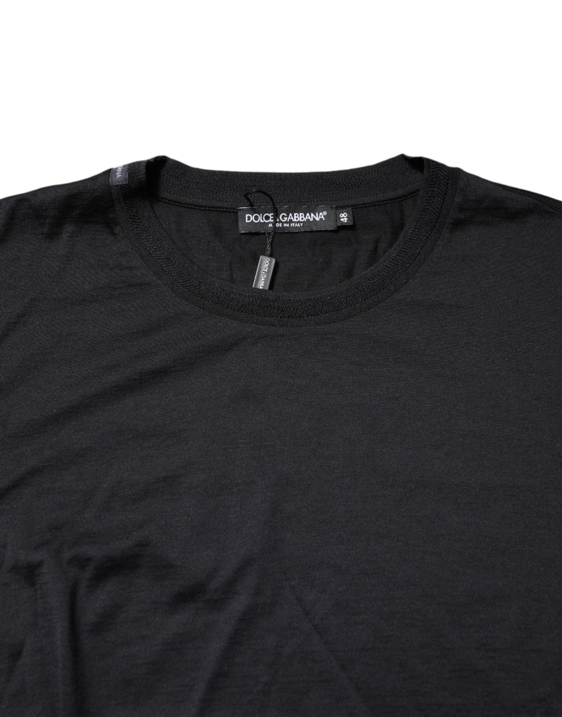 Dolce & Gabbana Dark Blue Silk Crew Neck Men Pullover Sweater