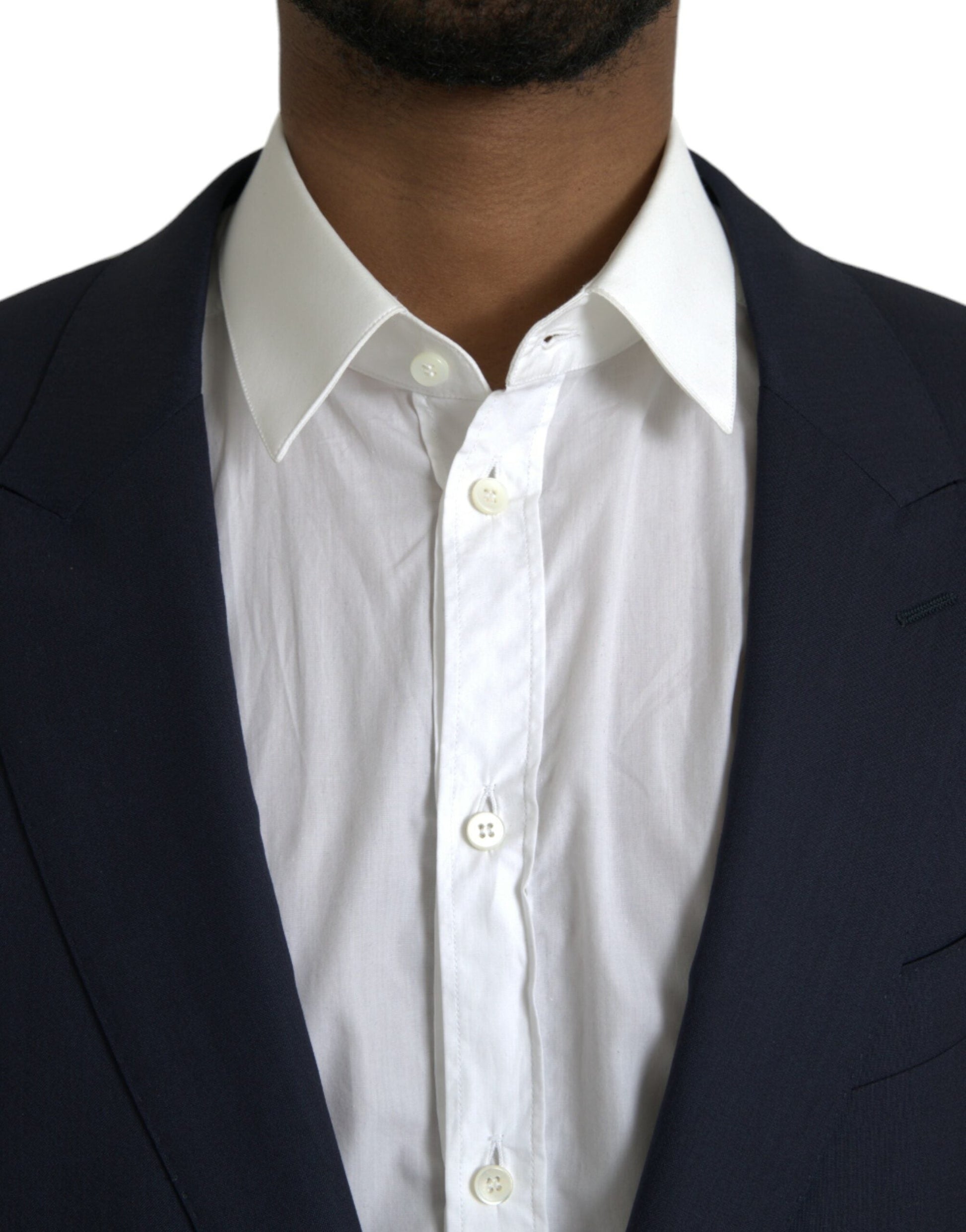 Dolce & Gabbana Dark Blue Wool Single Breasted Coat Blazer