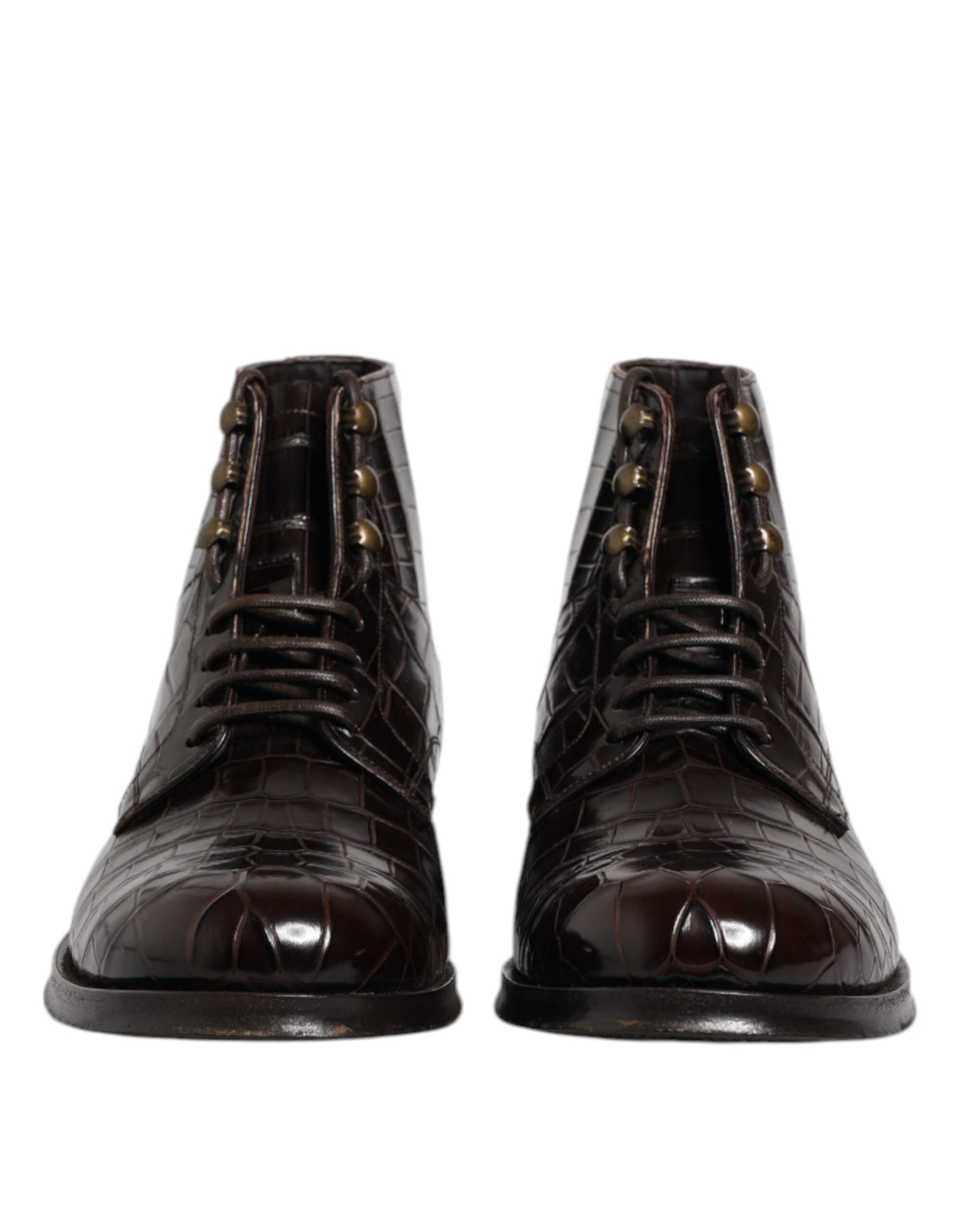 Dolce & Gabbana Dark Brown Leather Lace Up Short Boots Shoes