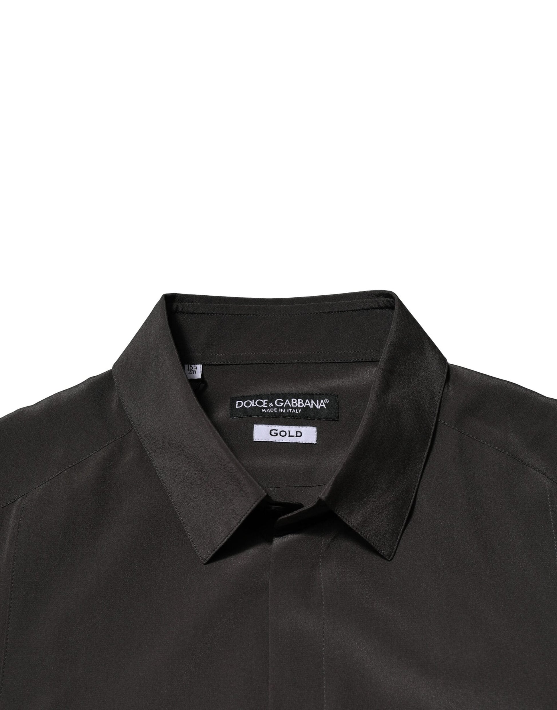 Dolce & Gabbana Dark Brown Silk GOLD Men Dress Formal Shirt