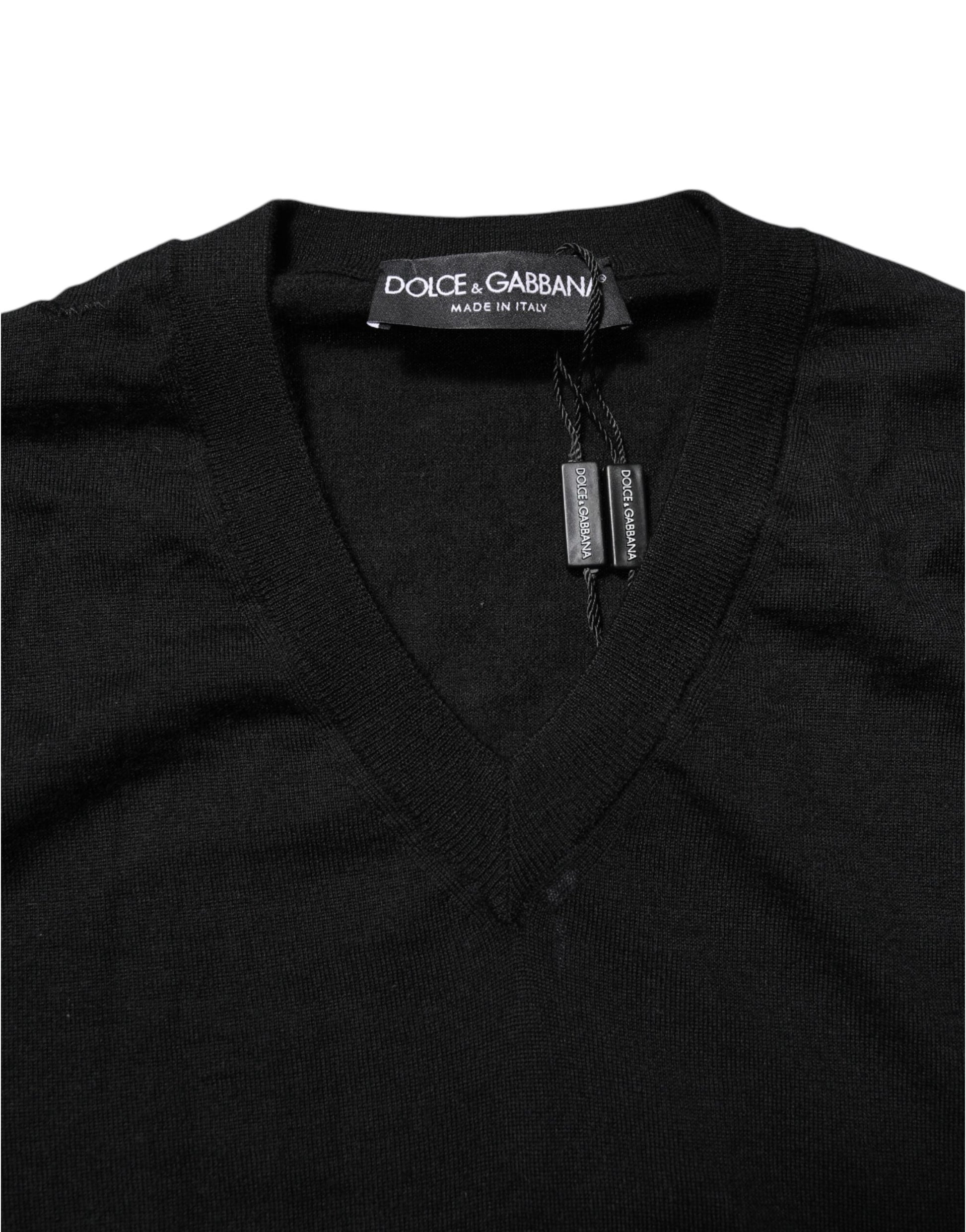 Dolce & Gabbana Dark Gray Embroidered Logo Pullover Sweater
