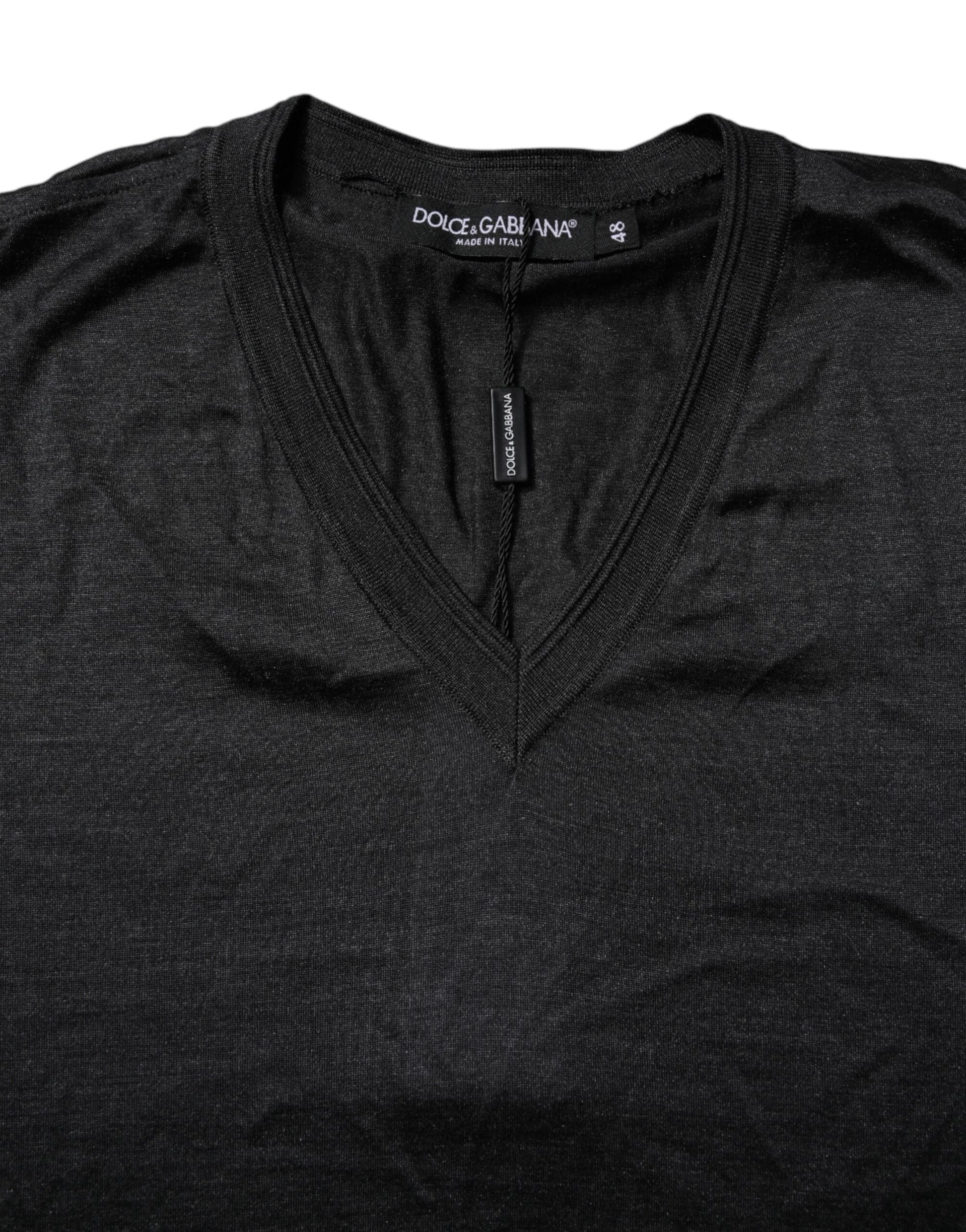Dolce & Gabbana Dark Gray Silk V-neck Short Sleeves T-shirt