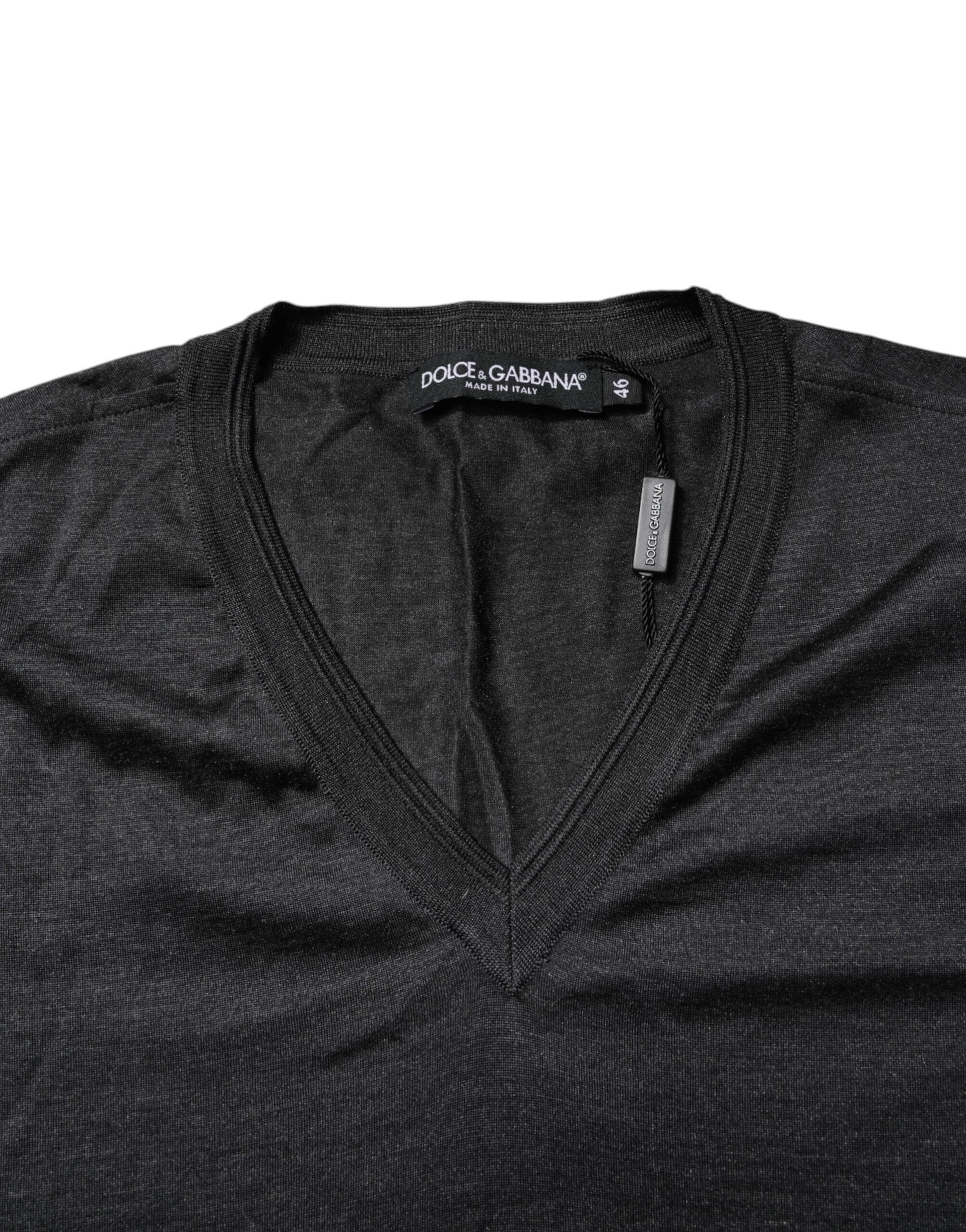 Dolce & Gabbana Dark Gray Silk V-neck Short Sleeves T-shirt