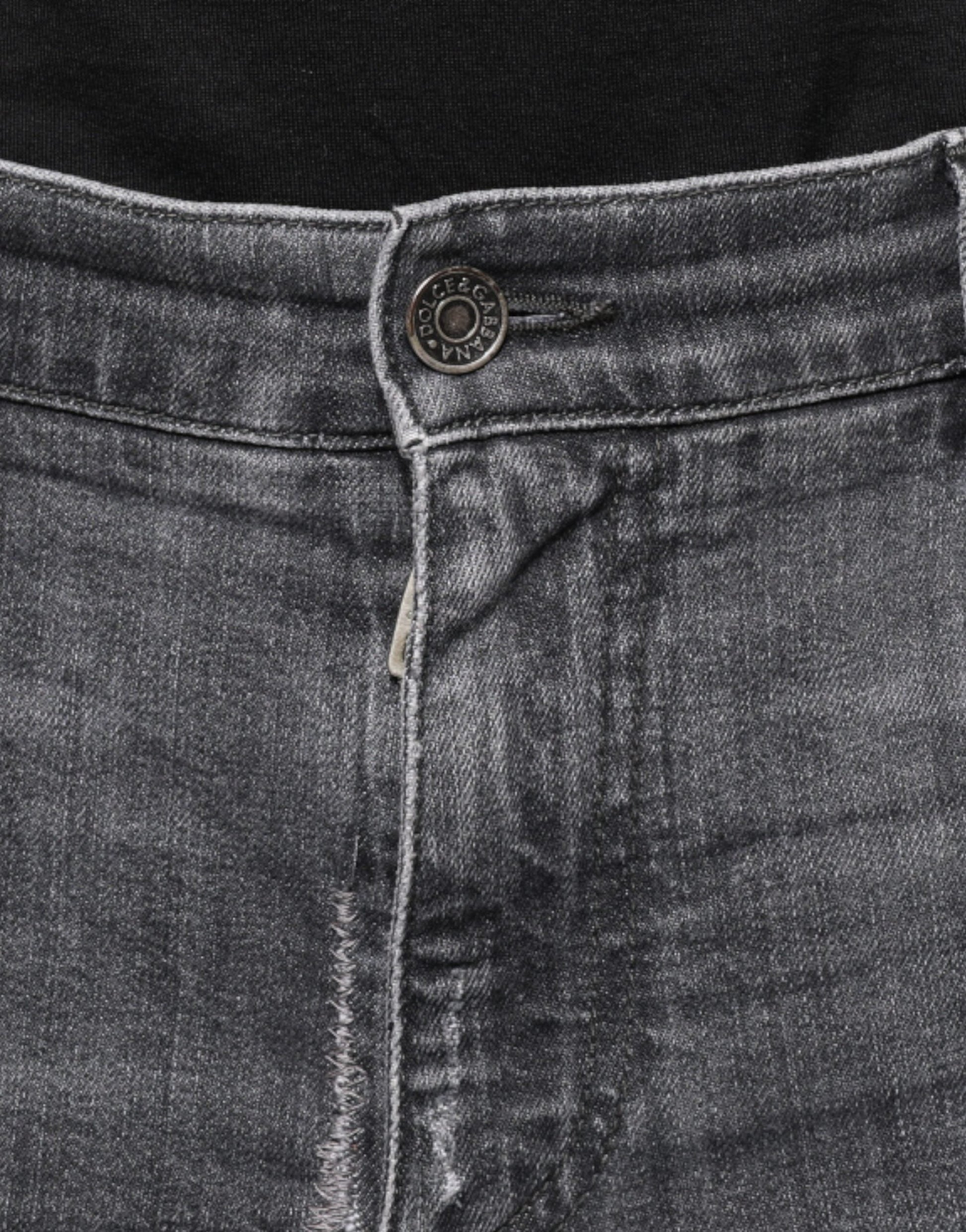 Dolce & Gabbana Dark Gray Tattered Cotton Skinny Denim Jeans