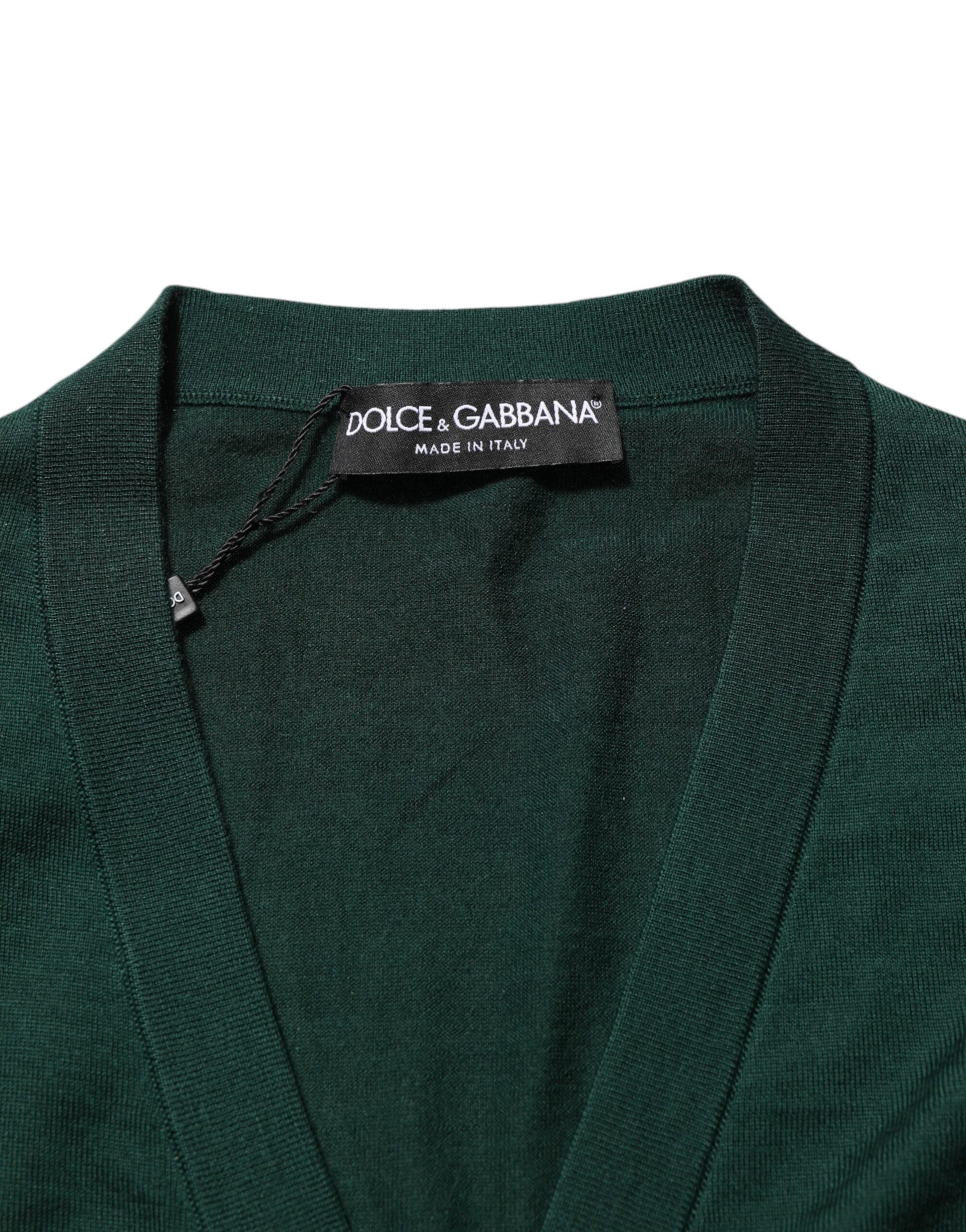 Dolce & Gabbana Dark Green Button Down Men Cardigan Sweater