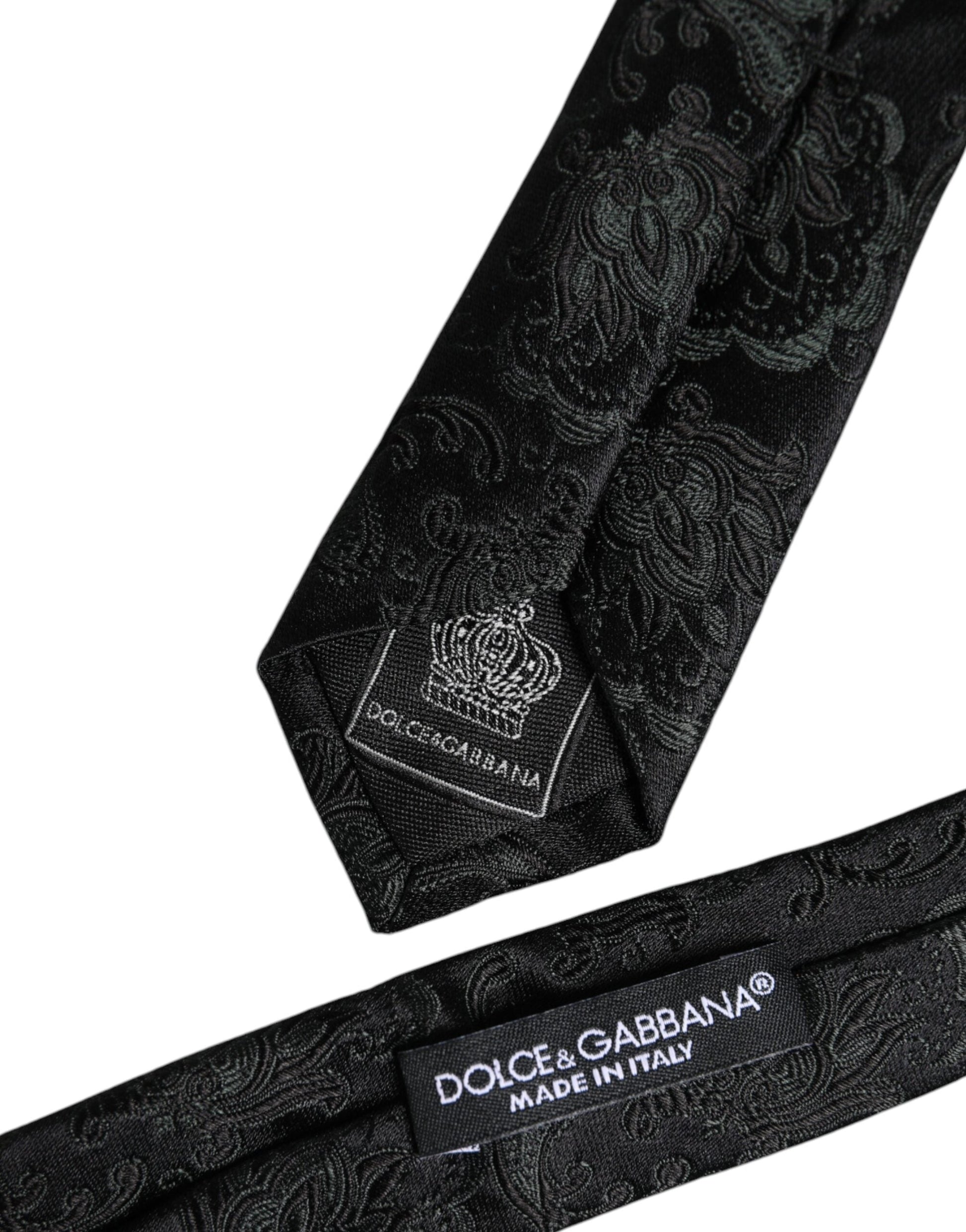 Dolce & Gabbana Dark Green Floral Silk Adjustable Necktie Tie