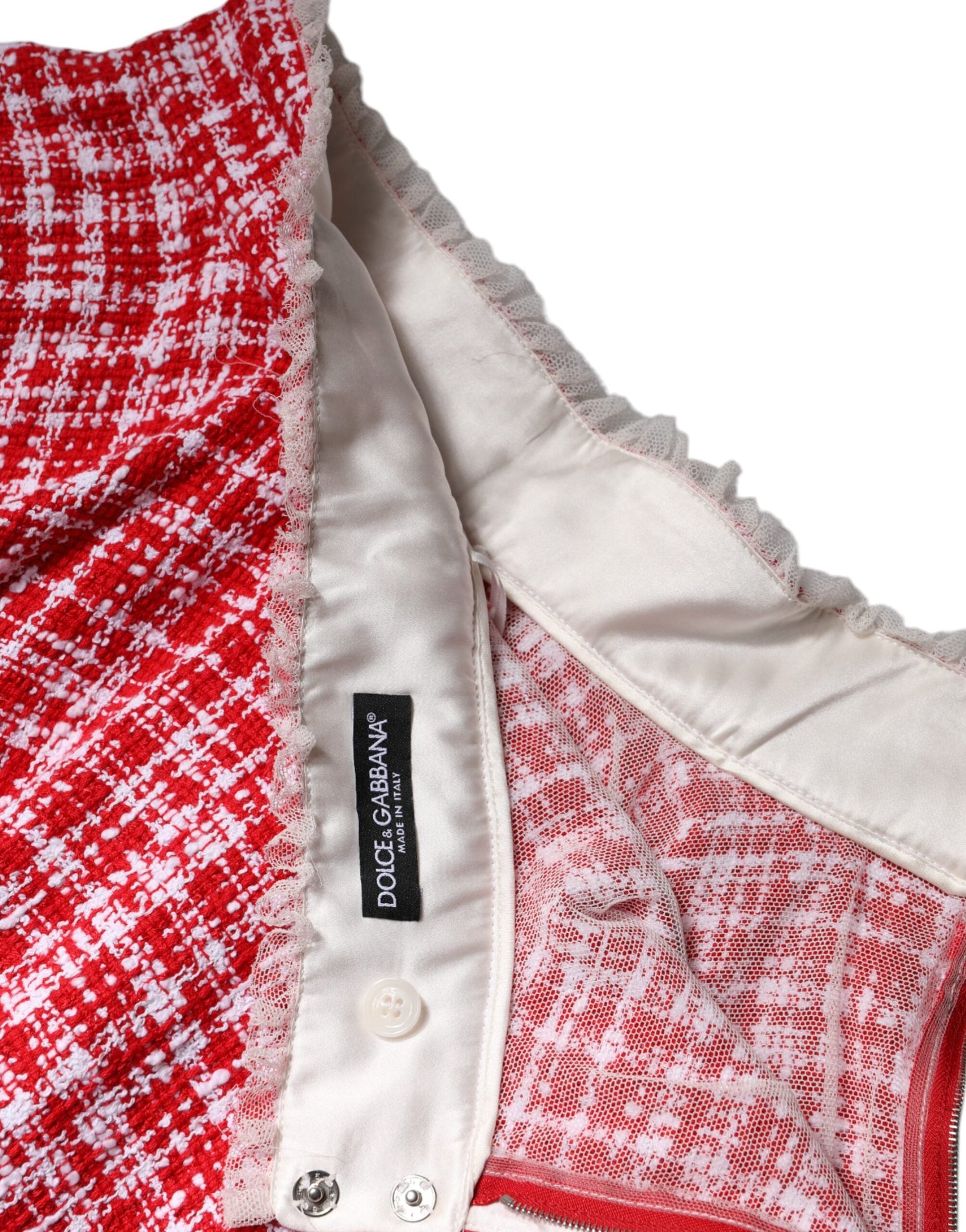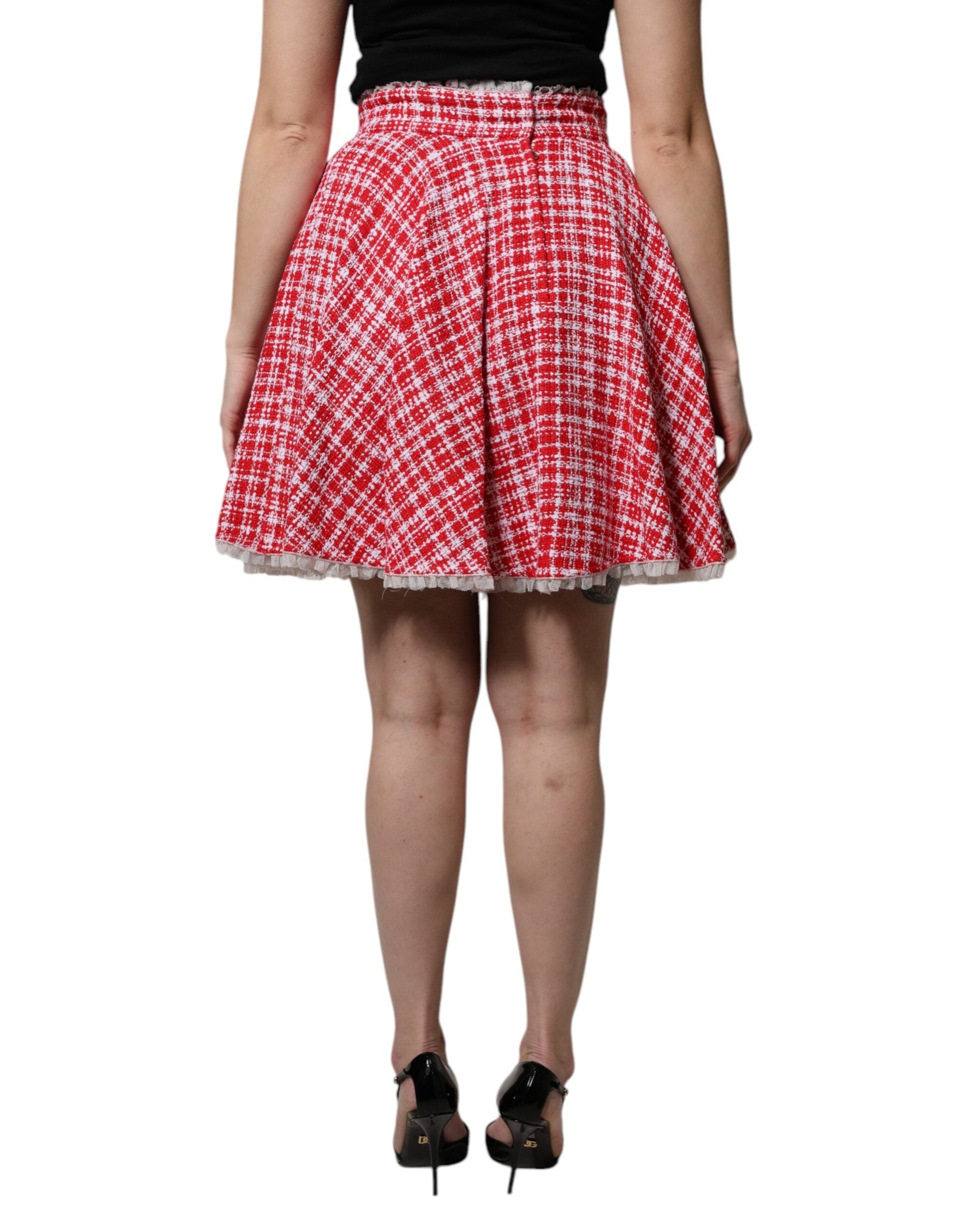 Dolce & Gabbana Red White High Waist A-line Above Knee Skirt