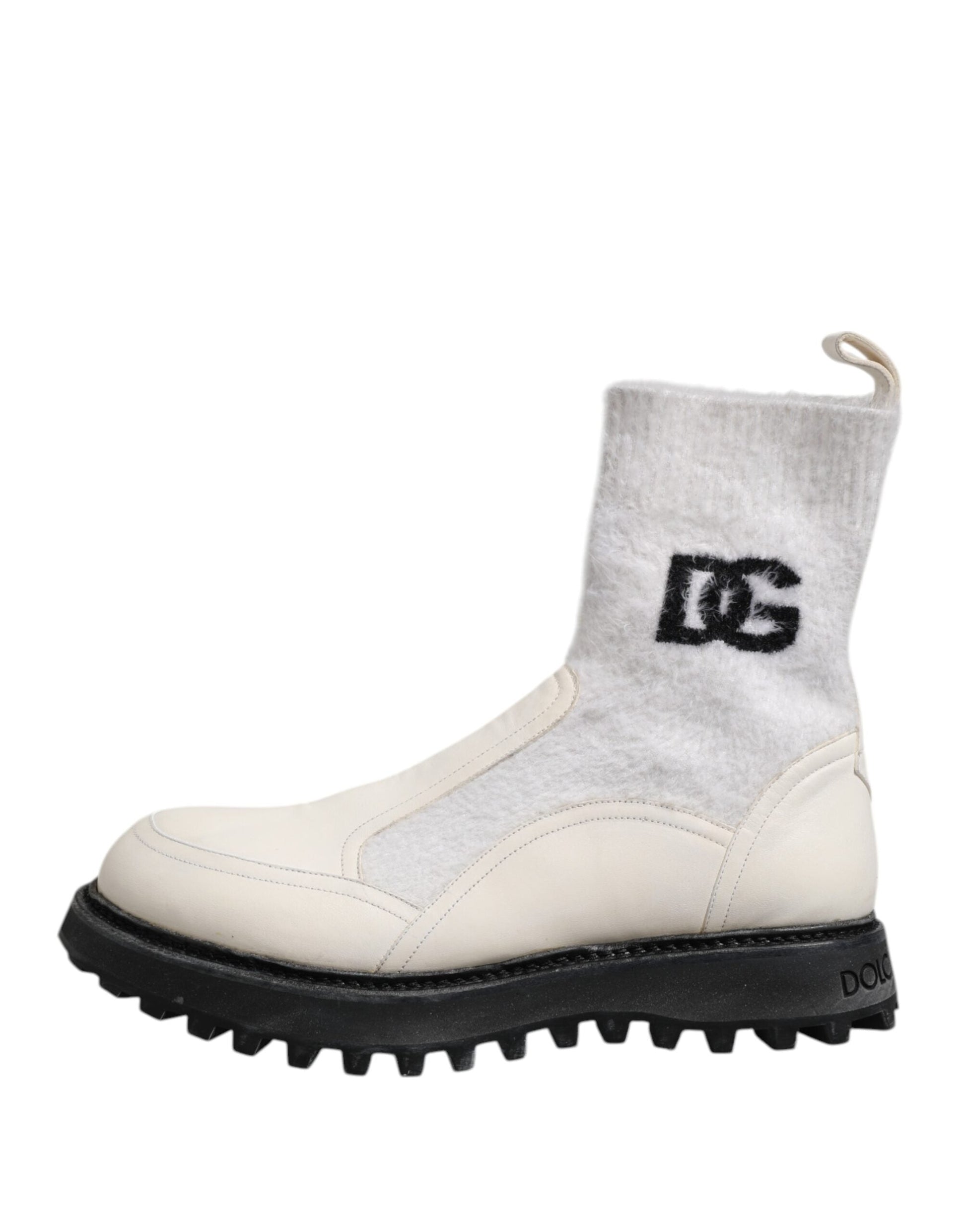 Dolce & Gabbana White Beige DG Logo Mid Calf Boots Shoes