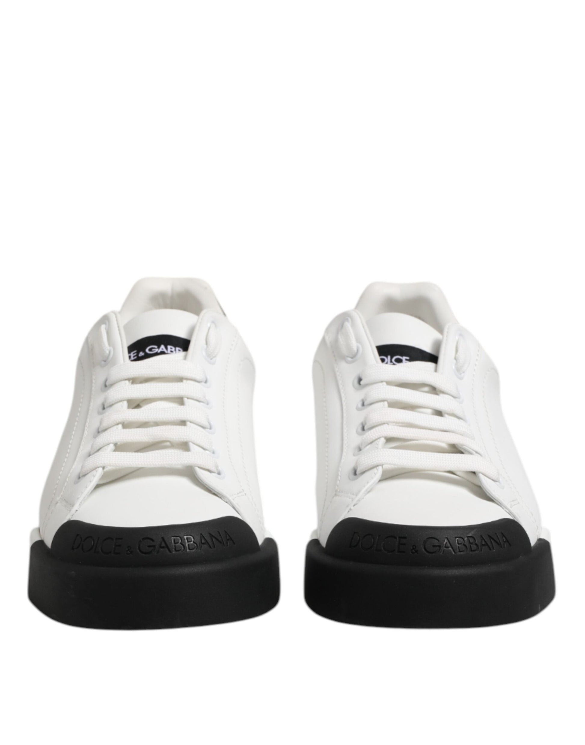 Dolce & Gabbana White Black Logo Leather Lace Up Sneakers Shoes