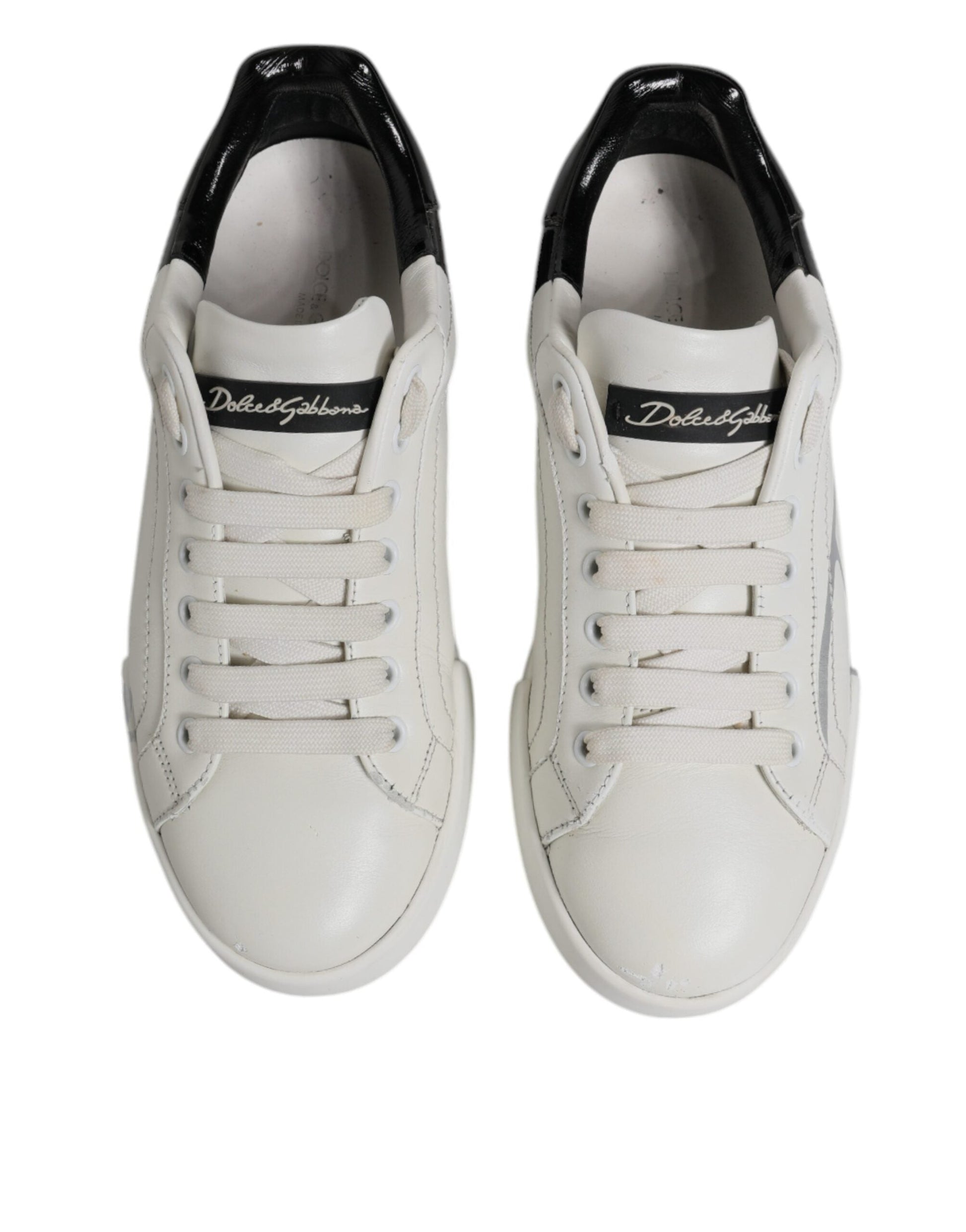 Dolce & Gabbana White Black Logo Portofino Men Sneaker Shoes