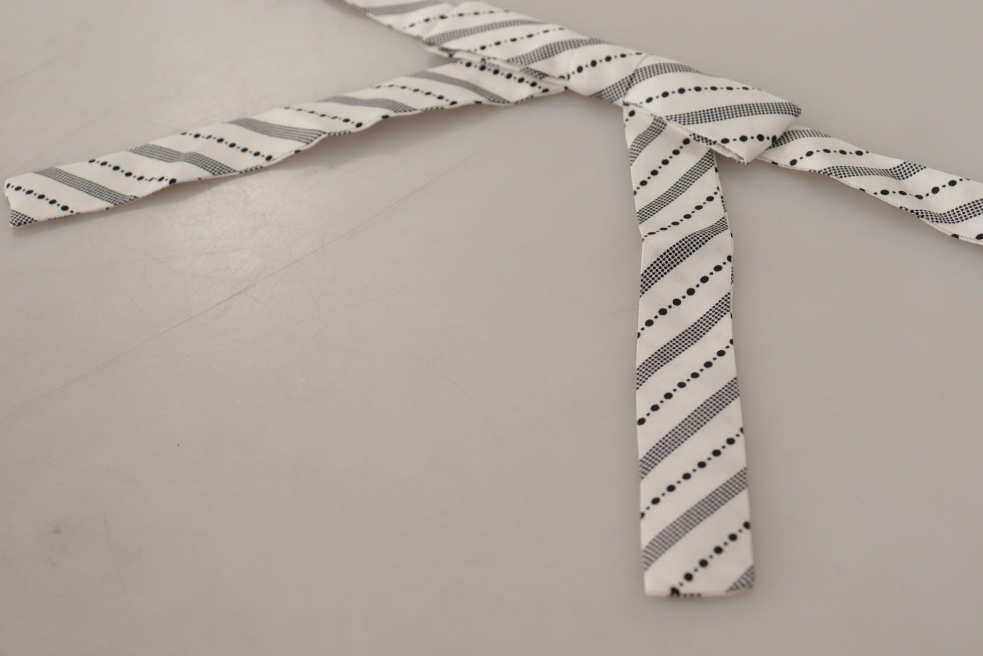 Dolce & Gabbana White Black Polka Dot 100% Silk Neck Papillon Bow Tie