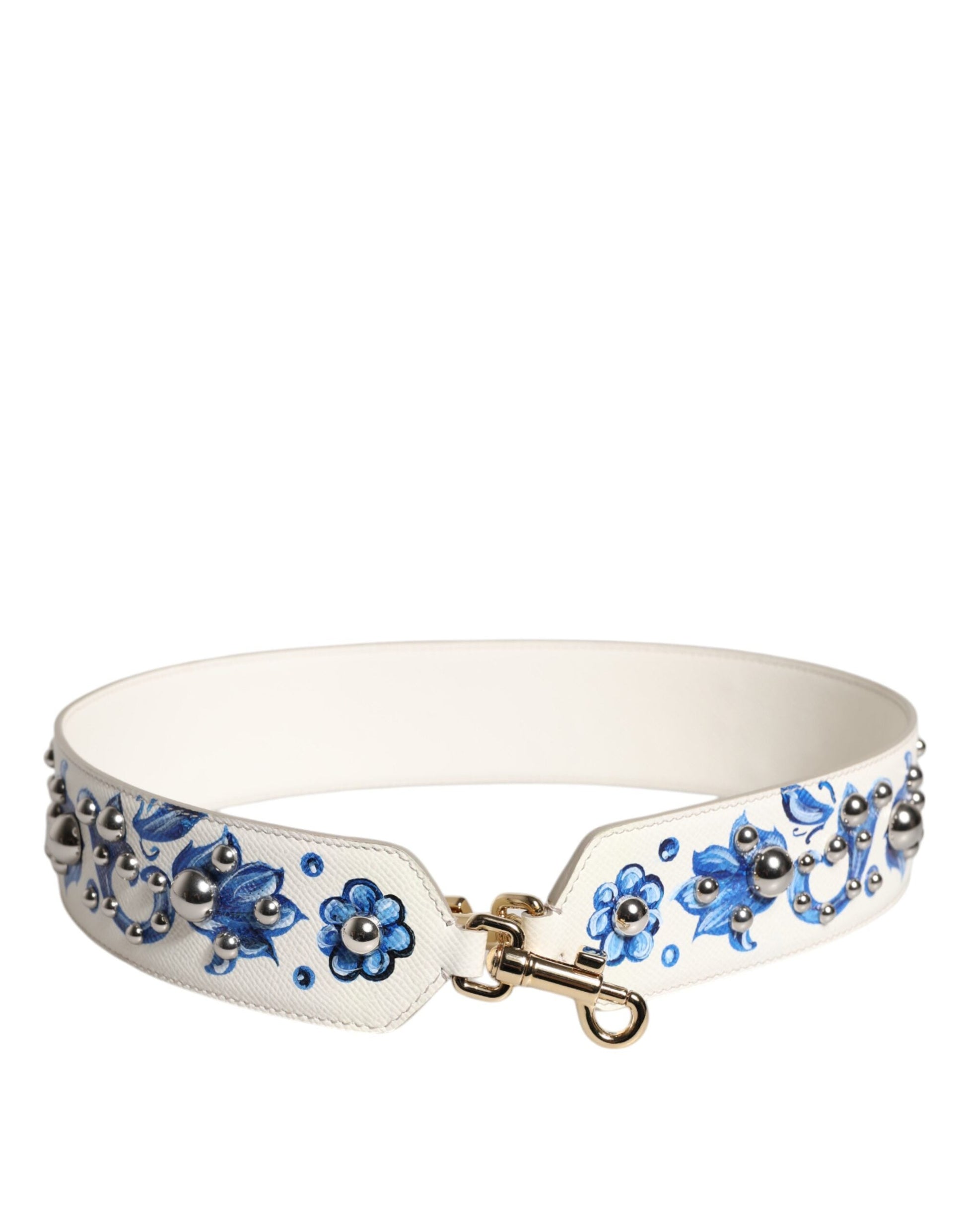 Dolce & Gabbana White Blue Floral Leather Stud Shoulder Strap