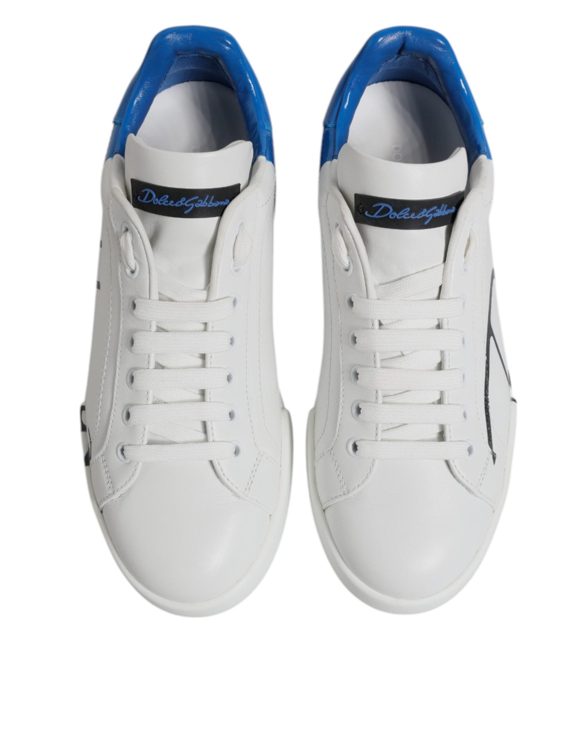 Dolce & Gabbana White Blue Leather Logo Low Top Sneakers Shoes