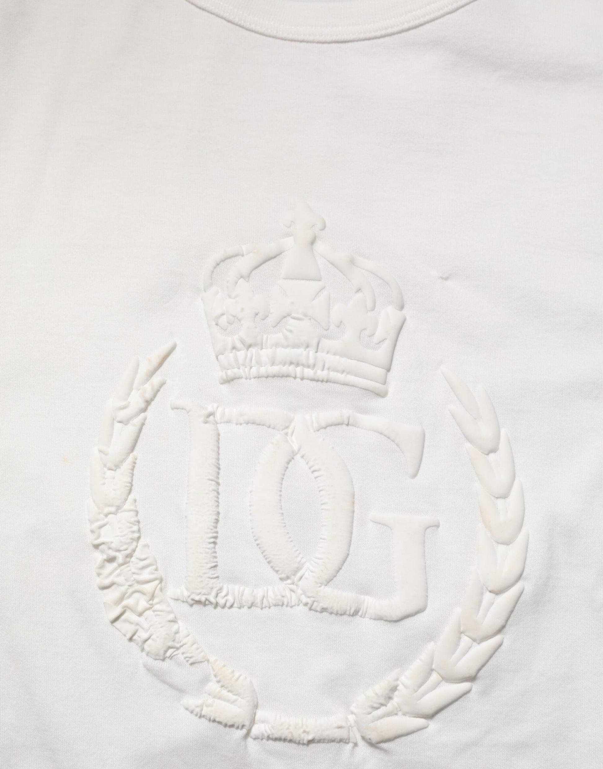 Dolce & Gabbana White Cotton DG Crown Embossed Men T-shirt