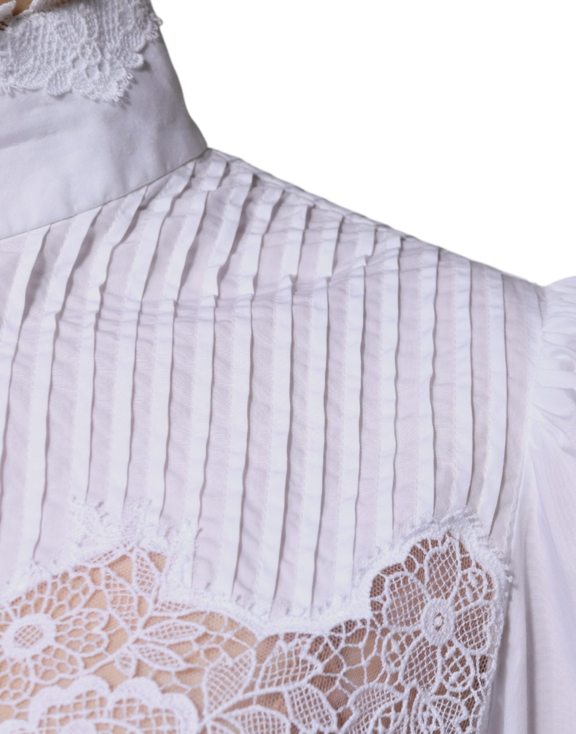 Dolce & Gabbana White Cotton Lace Trim Turtleneck Blouse Top