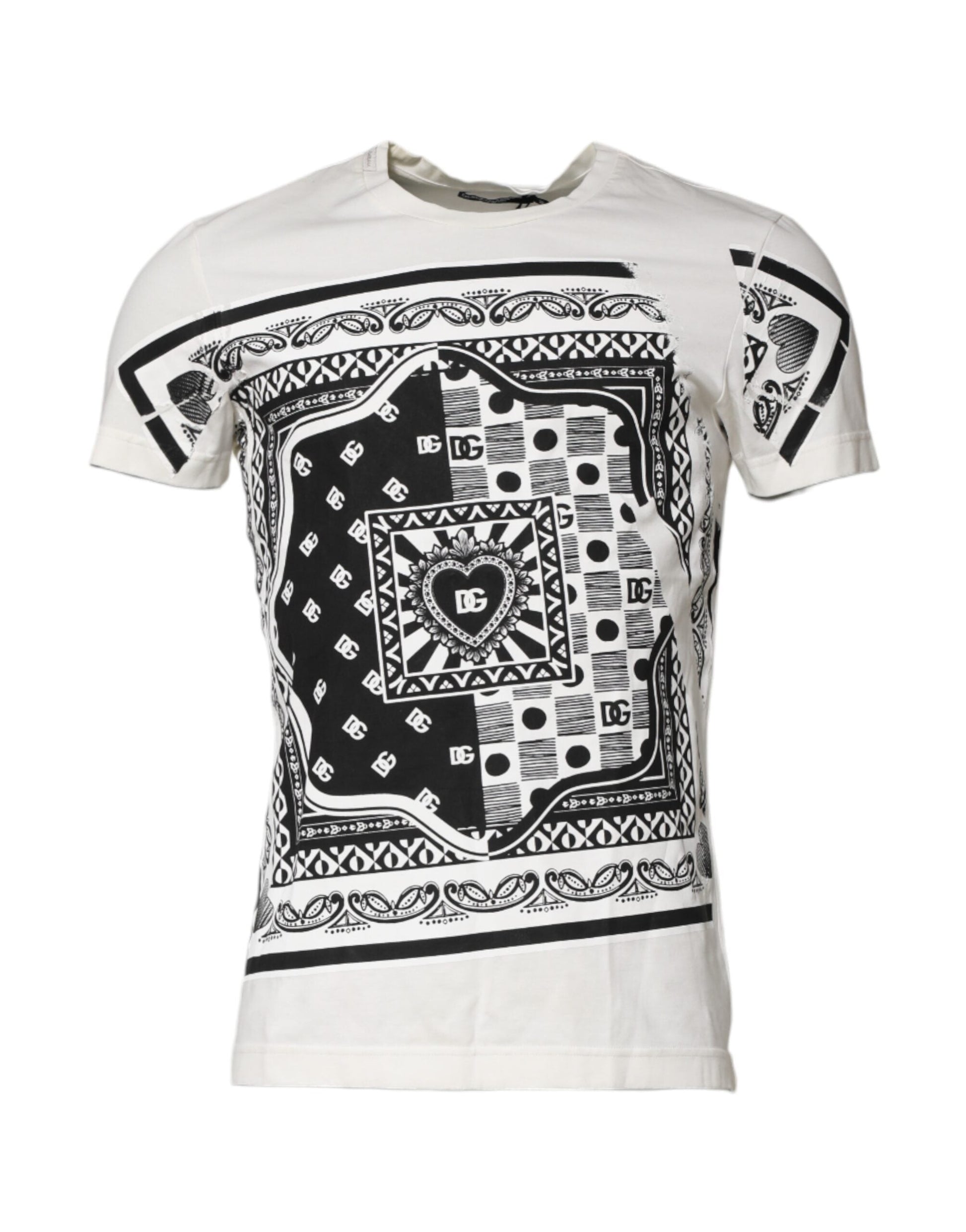 Dolce & Gabbana White Cotton Logo Bandana Print T-shirt