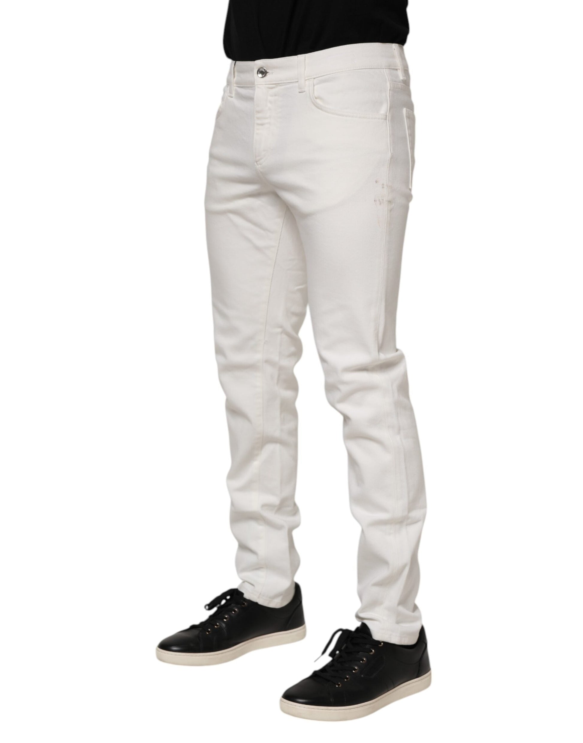 Dolce & Gabbana White Cotton Logo Plaque Slim Fit Denim Jeans